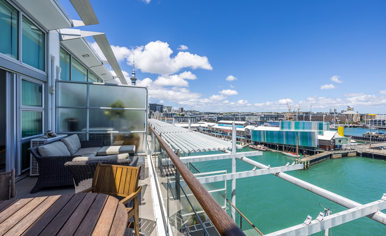 Discover comfortable waterfront living in this three-bedroom apartment in Shed 23 on Princes Wharf. Spanning 134 SQM, this residence occupies the top two floors and offers great views, spacious decks, and beautiful sunsets.