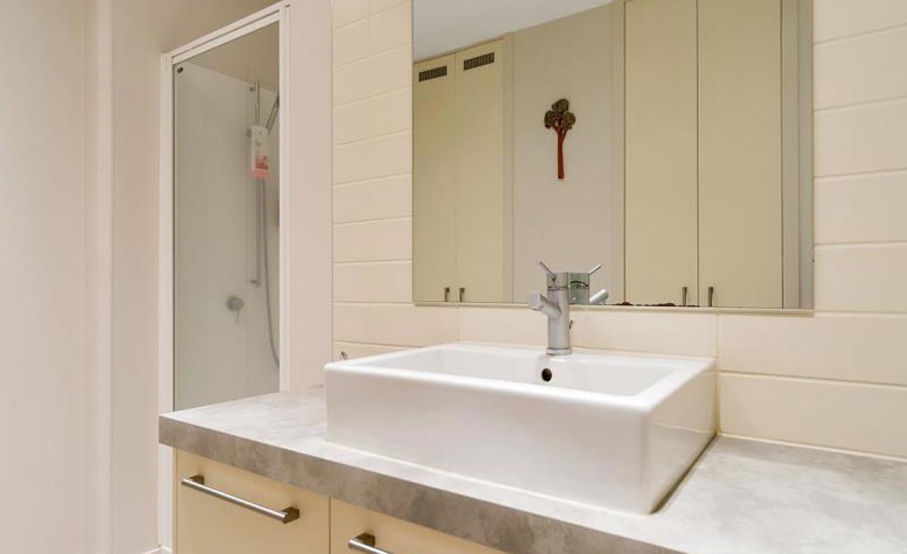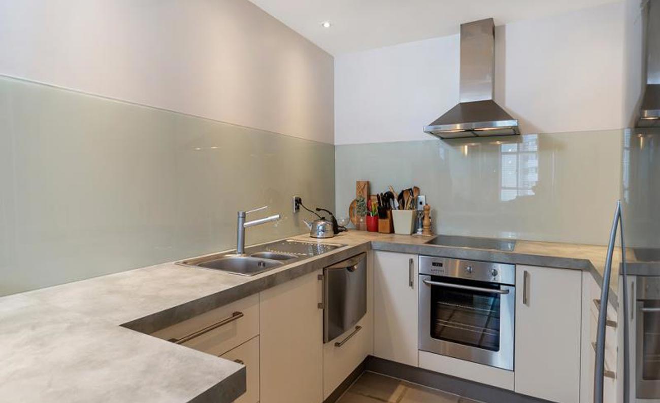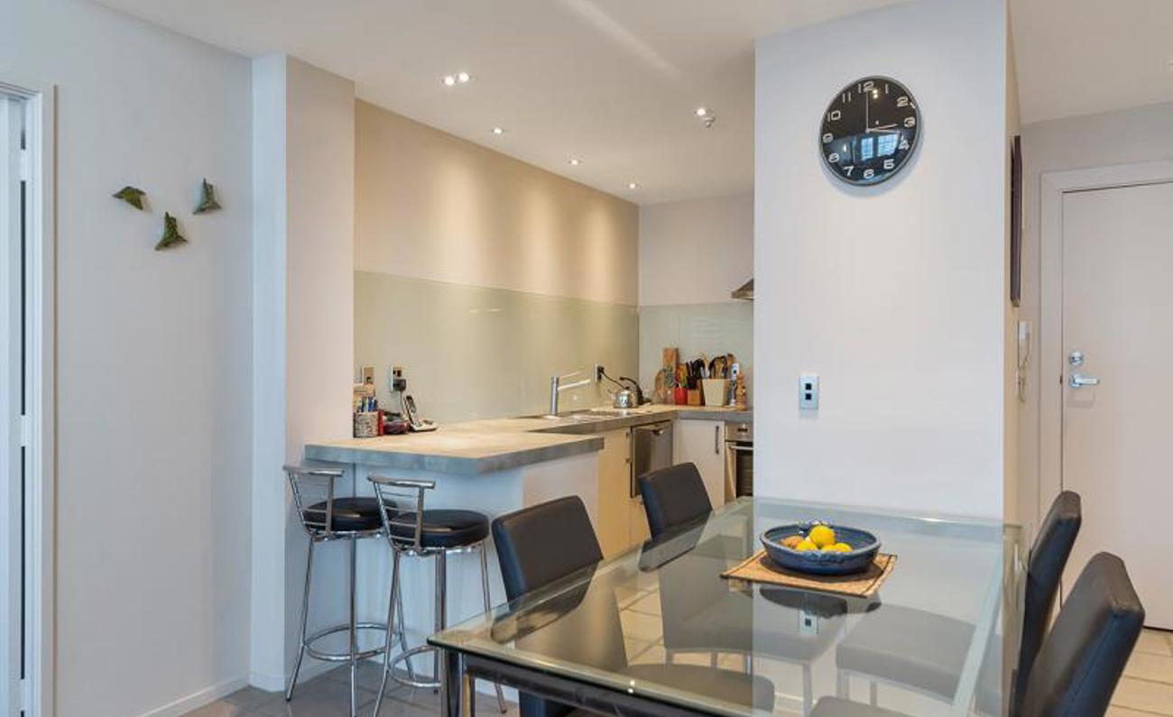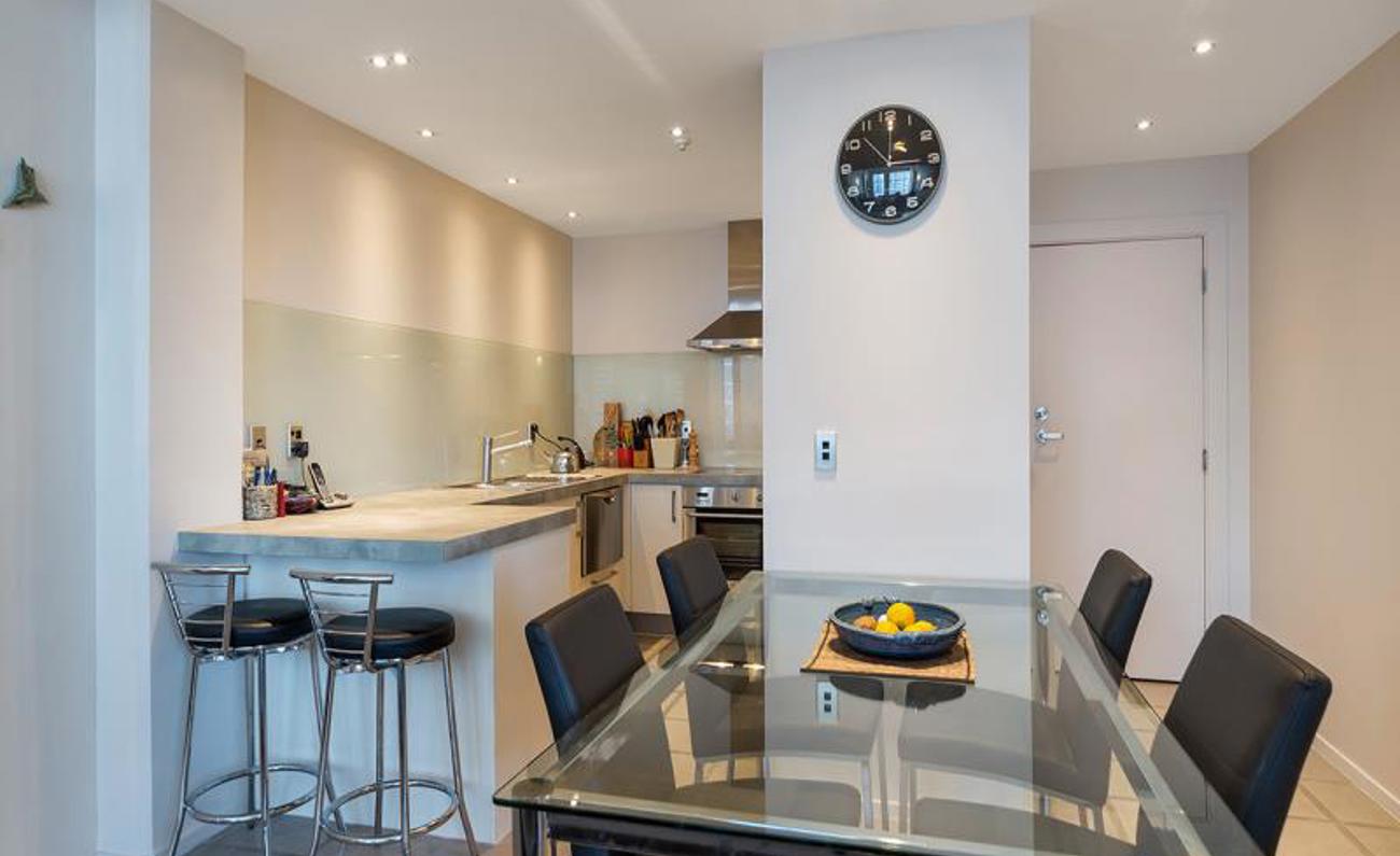 A spacious two-bedroom apartment with a modern kitchen in a heritage building offers substantially larger space than many other apartments around the city.