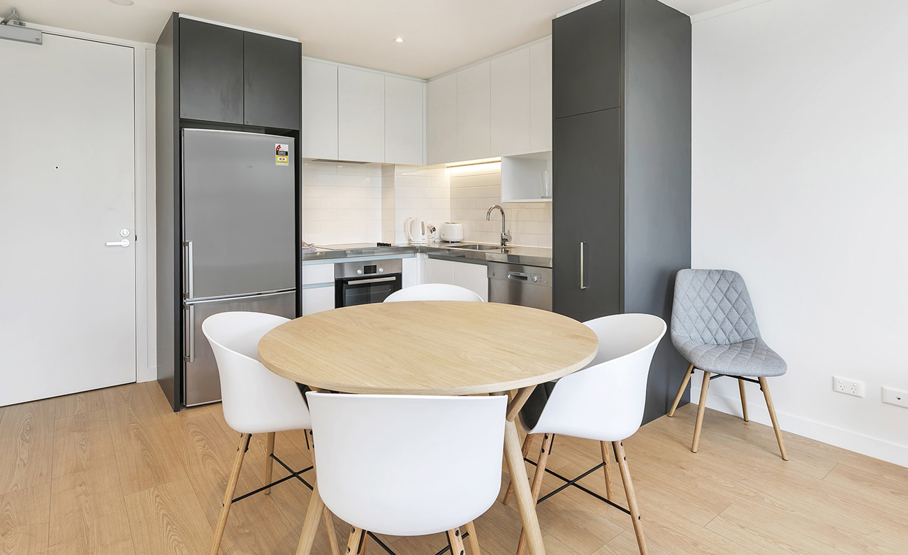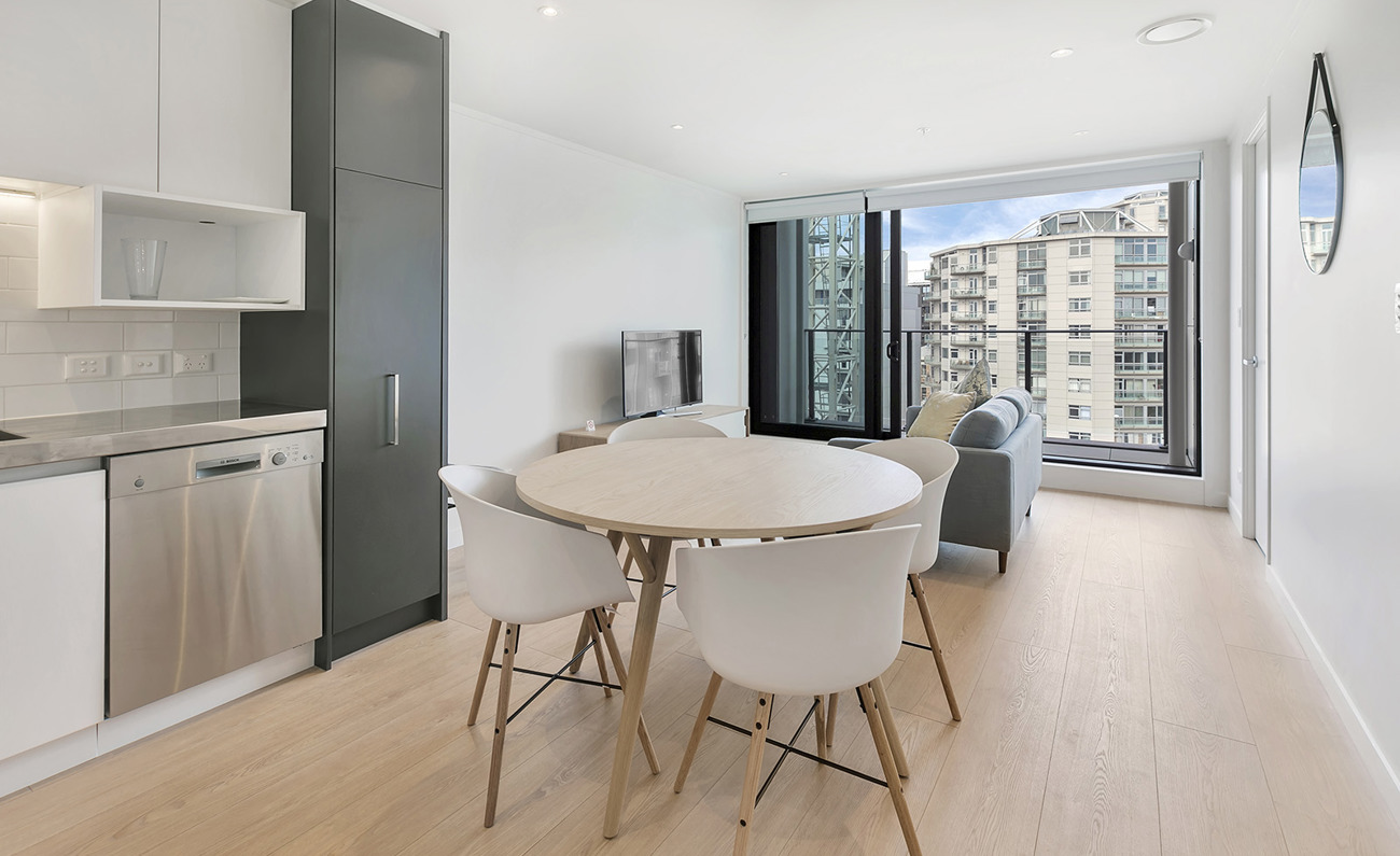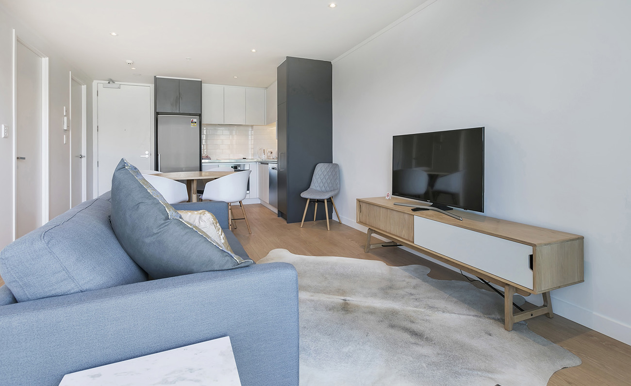 The Centro at Sugartree apartment offers a generous floor plan with a well-designed layout. The open-plan kitchen, dining, and lounge area flows seamlessly onto a private deck, creating a bright and inviting living space.