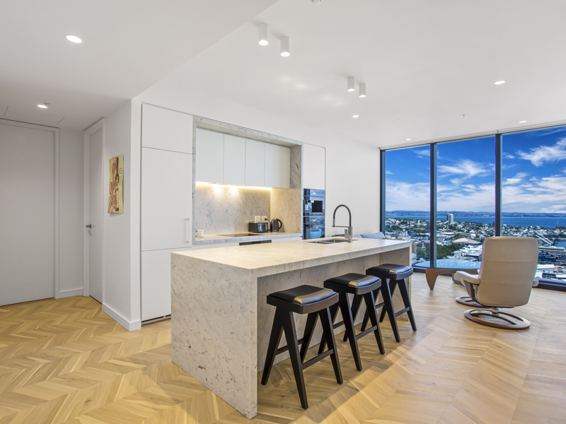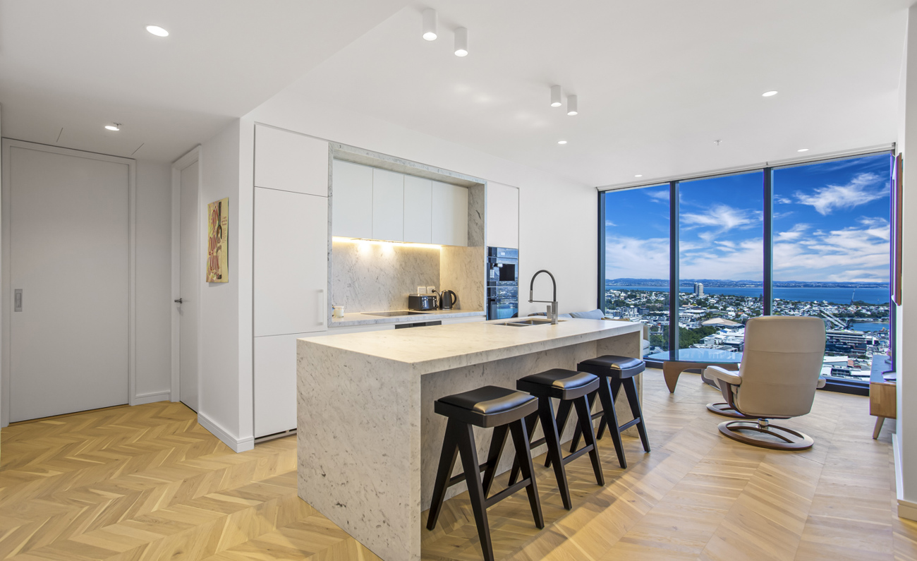 One of Auckland’s most sought-after residential buildings. Boasting sweeping views of the city skyline and ocean, this residence blends sophisticated style with unparalleled comfort and convenience.