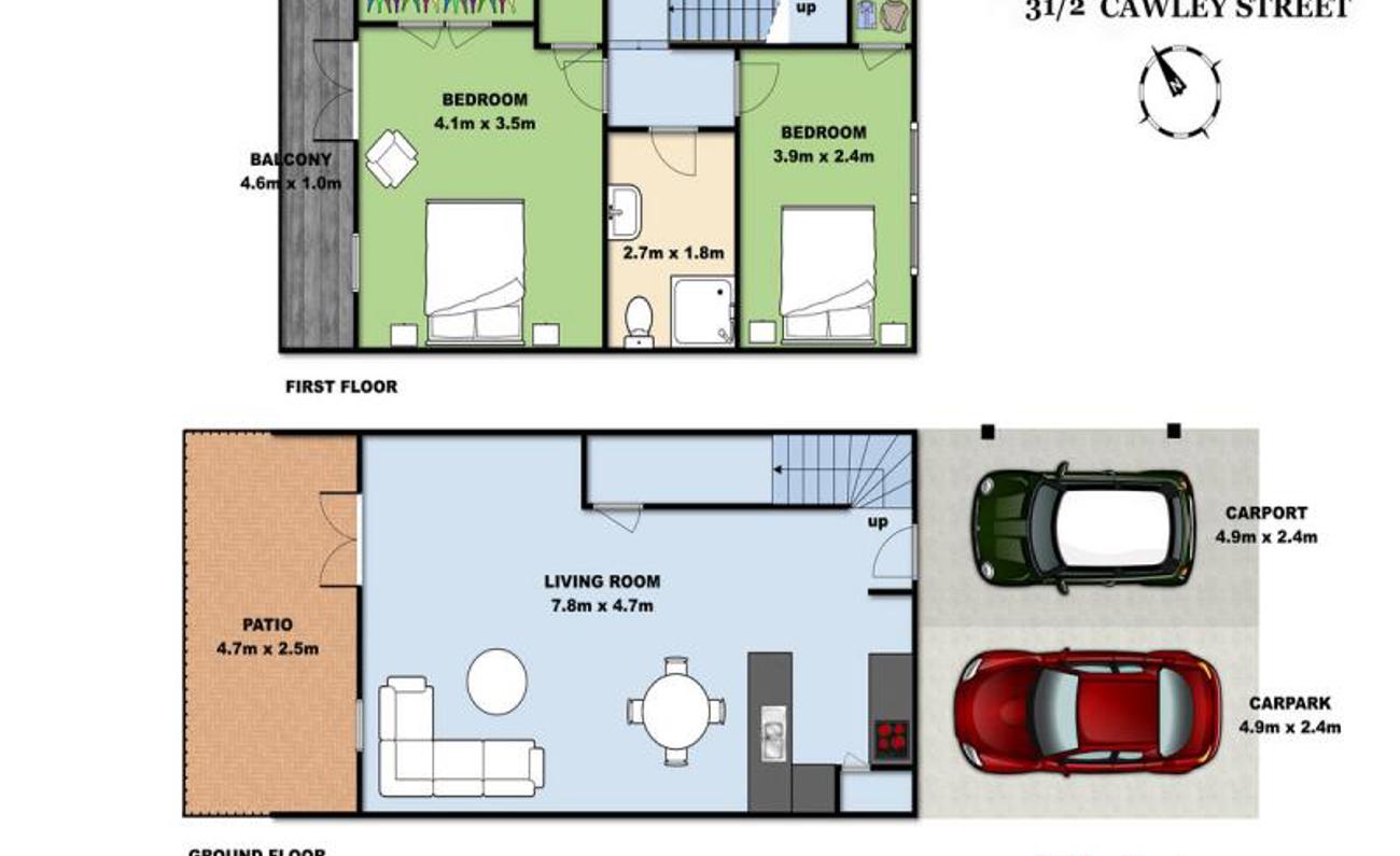 Level 1 - two large double bedrooms, with a bathroom/laundry in between.
