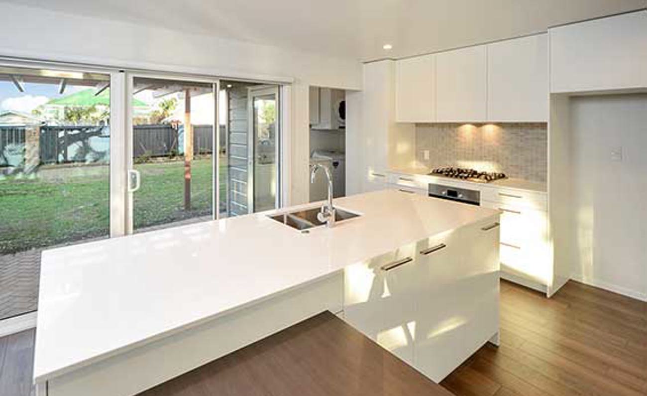 The home has a sunny fenced flat front garden, and the double garage has internal access to the main living level, which has two reception areas and an open plan modern kitchen - all opening onto an extended west-facing deck with stunning views over the bay through an old Pohutukawa tree - the perfect place to watch the sunsets from. A full laundry and separate toilet are also on this level.