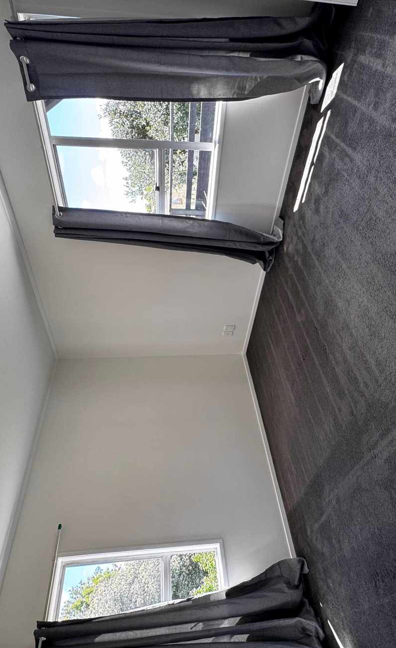 Freshly painted interior with new curtains and light fittings.