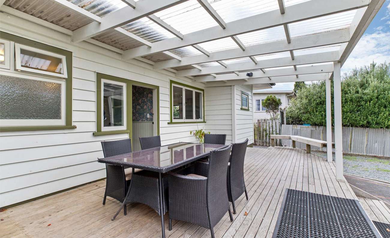 This charming villa-style home offers three bedrooms and two spacious lounges, blending classic character with modern comfort. The contemporary kitchen features a double oven and a generous butler’s pantry, and flows seamlessly into the open-plan dining area and one of the lounges—perfect for everyday living and entertaining. Beautiful wooden floors run throughout, enhancing the home’s warmth and appeal. Step out onto the well-proportioned deck, which enjoys a private outlook over the backyard and is nicely set back from the road. Situated on a family-sized section, there is ample space for children to play. Completing the package is the added bonus of a separate rumpus room or home office. This home retains the quaint charm of its era while offering all the features expected of modern living.