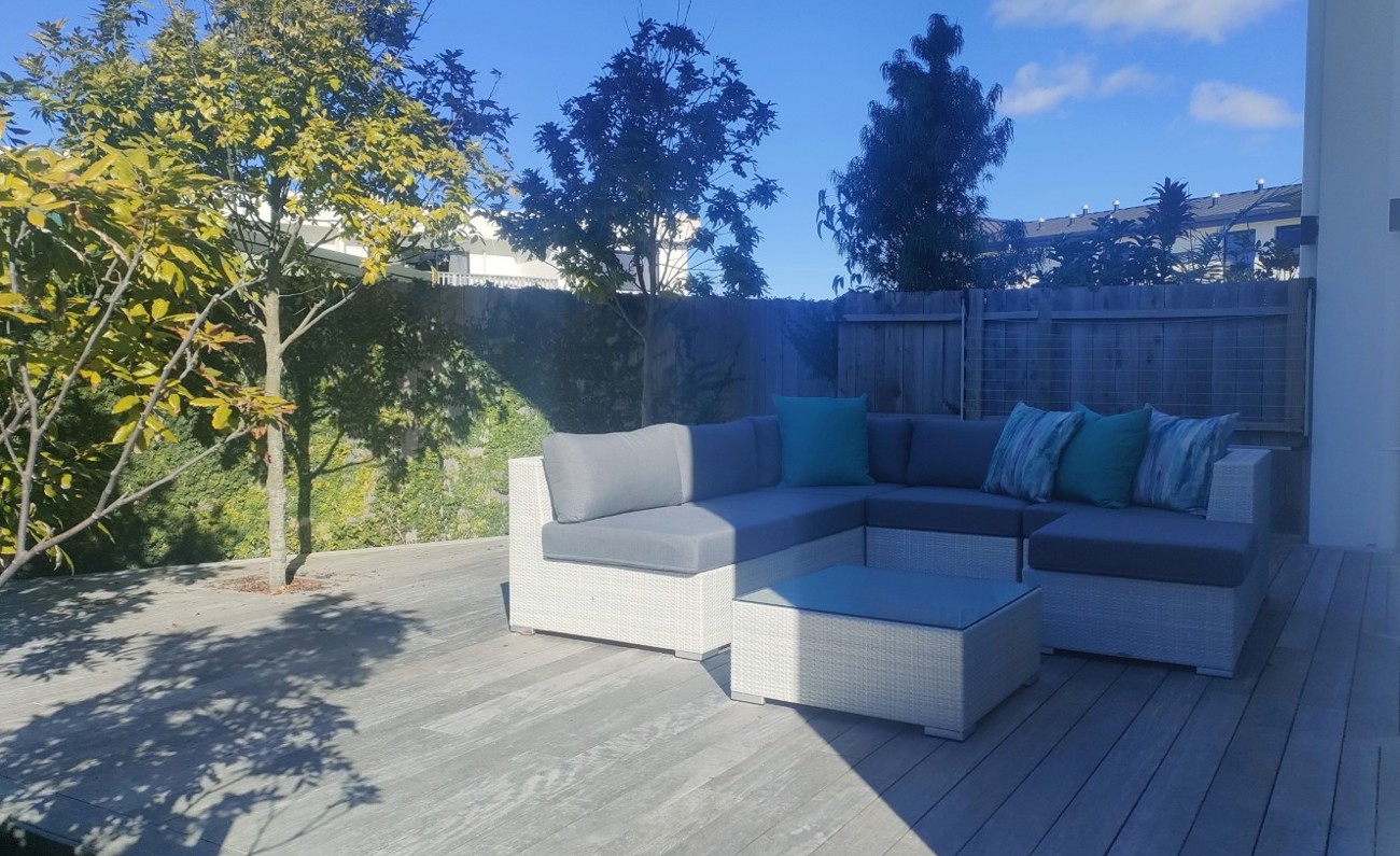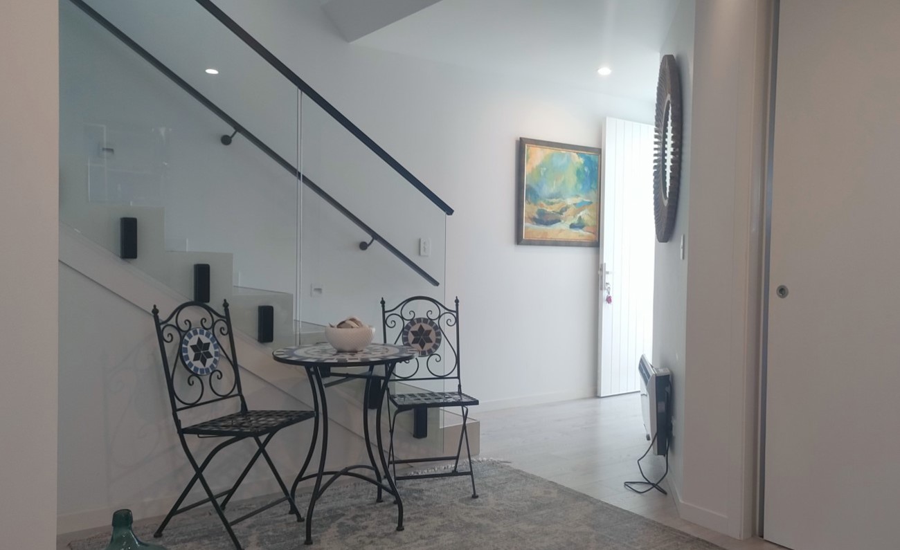 Top floor: Sunny balcony, large modern kitchen, dining, lounge, reading area, powder room, king bedroom, walk-in wardrobe, spacious dual bathroom (with bath).
