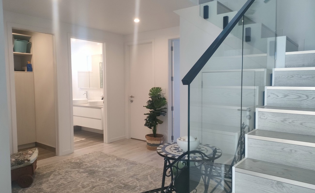 foyer, separate laundry, dual bathroom, queen bedroom,