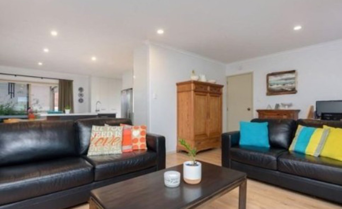 Featuring three generous bedrooms and two bathrooms, plus a separate toilet, the layout is ideal for families or professionals wanting room to breathe. The open-plan lounge and dining area flows seamlessly onto a covered wrap-around balcony, complete with wind-protective sides — perfect for year-round coastal living and entertaining.