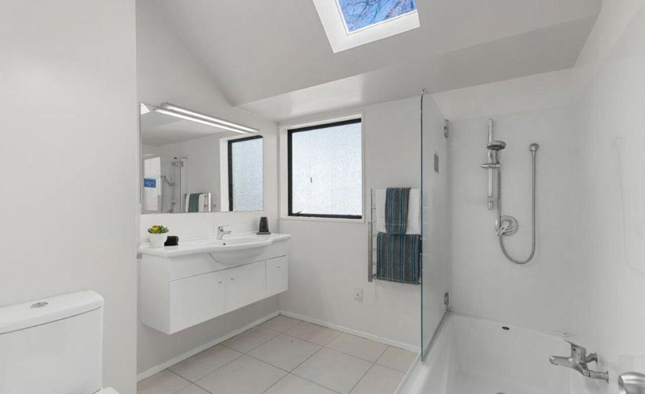 The ground floor offers a light and airy kitchen with a breakfast making it open plan to the dining area. This leads through to the generous lounge which benefits from a heat pump and access to the private courtyard. There is a guest toilet and separate laundry on this level.