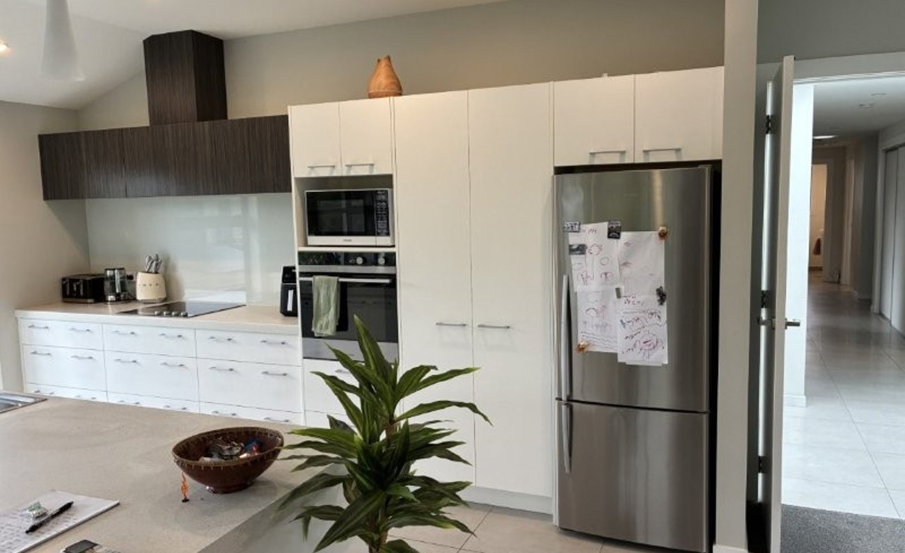 - ceramic cooktop, dishwasher and pantry cupboard in kitchen