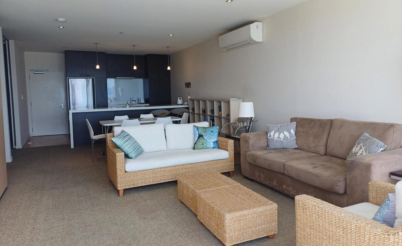 This fully furnished two bedroom, two bathroom apartment provides privacy in a secure environment with stunning views of Nelson's beautiful waterfront. Perfect space for entertaining or just sitting back and relaxing. Only a 10 min walk to the city centre.