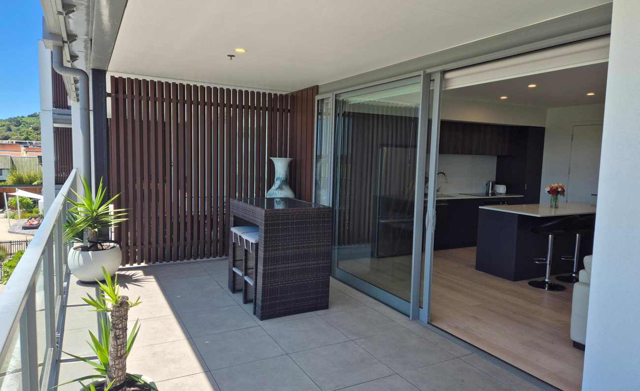 This modern apartment is situated on the third floor of the Ocean View Apartments complex in Tāhunanui, offering comfortable living in one of Nelson’s most sought-after coastal neighbourhoods.