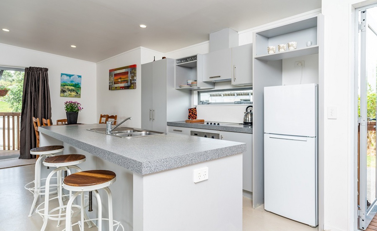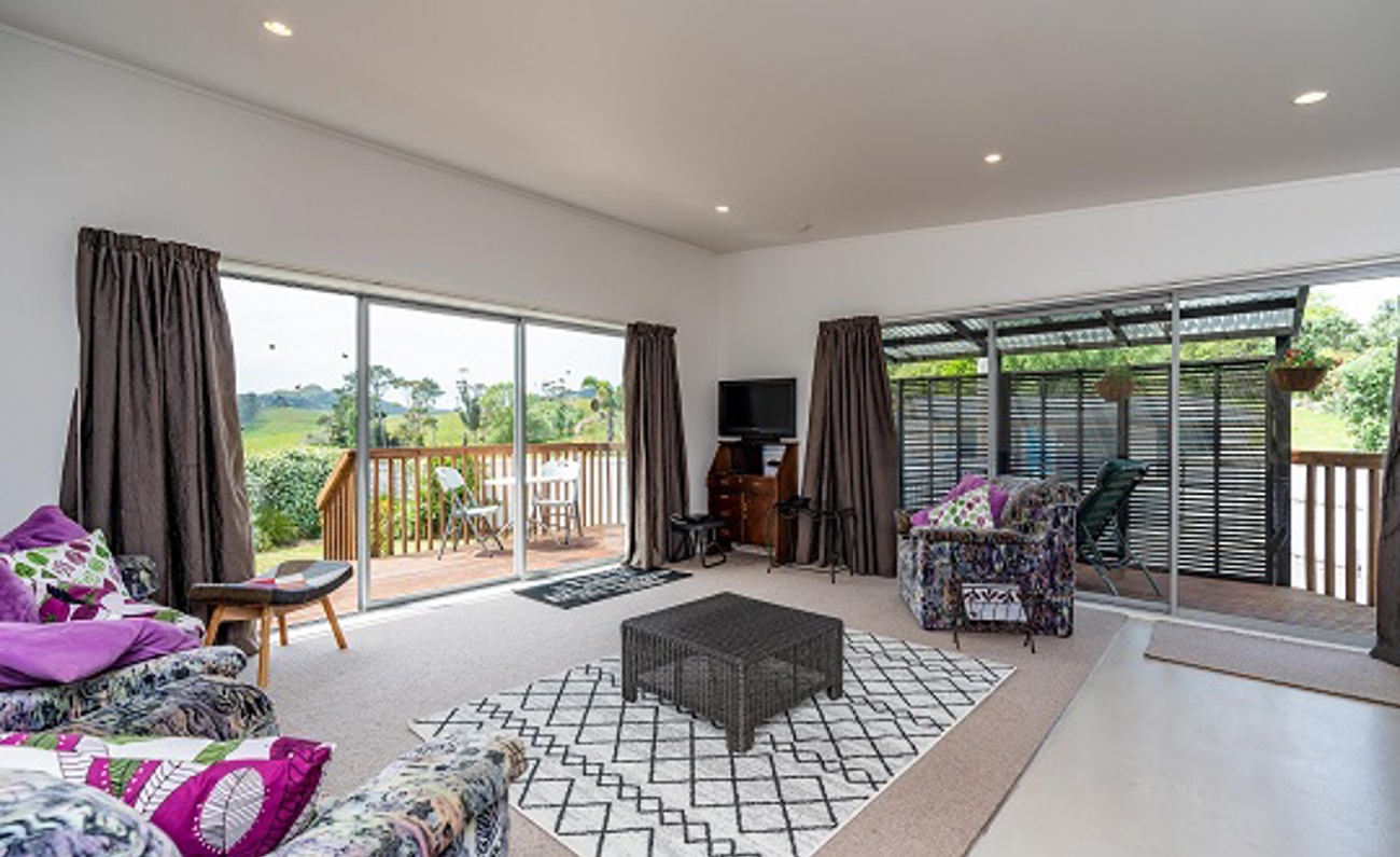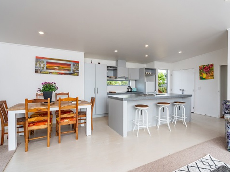 Tidy three-bedroom, 2-bathroom home. Open plan living opening onto a sunny deck. The master bedroom has an ensuite. Laundry is in a clever alcove cupboard off the kitchen. Plenty of parking and close to estuary beach and surf beach. Shops, cafes, and golf course a very short drive away. Pleasant rural outlook with views to the Brynderwyns.