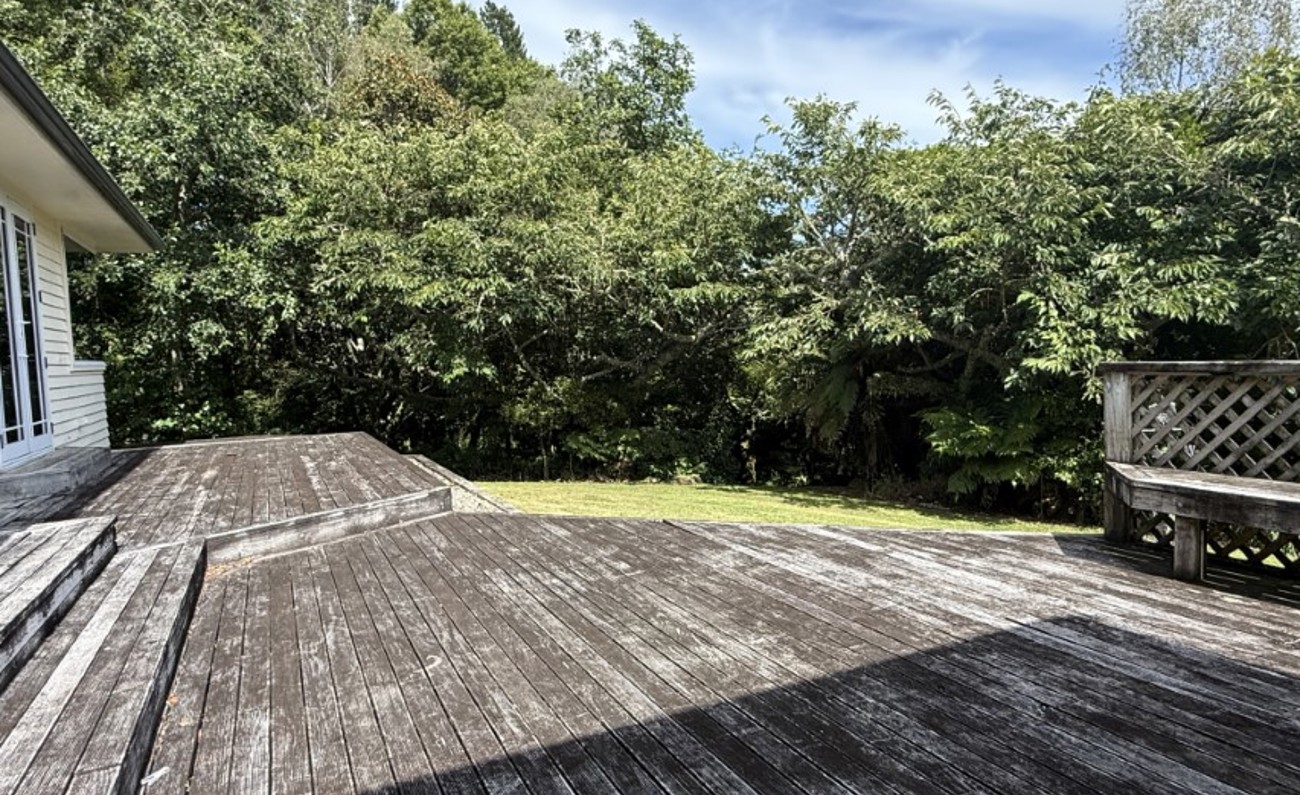 Summer evenings can be enjoyed outdoors, listening to birdsong and the distant croak of frogs while taking in the beautiful mature trees that surround the property. A charming garden walkway winds through the grounds, evoking the feel of a peaceful stroll through Pukekura Park.