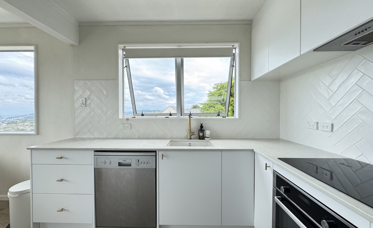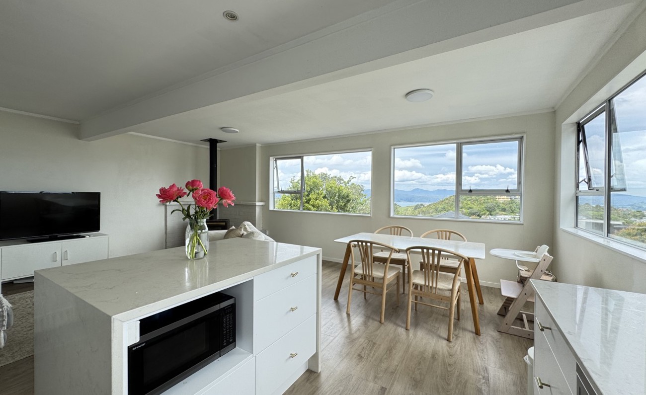 Featuring a stunning kitchen creating the perfect open plan living area surround by windows maximizing the natural light and the views of the hills and water in front.