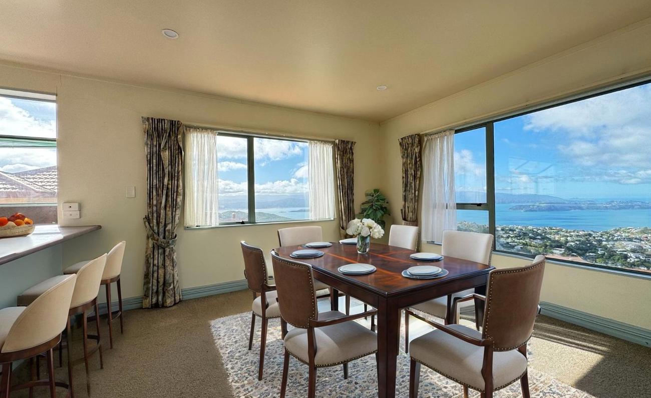 This expansive home in the heart of Broadmeadows is filled with all‑day sun and offers a beautiful outlook over Wellington Harbour.