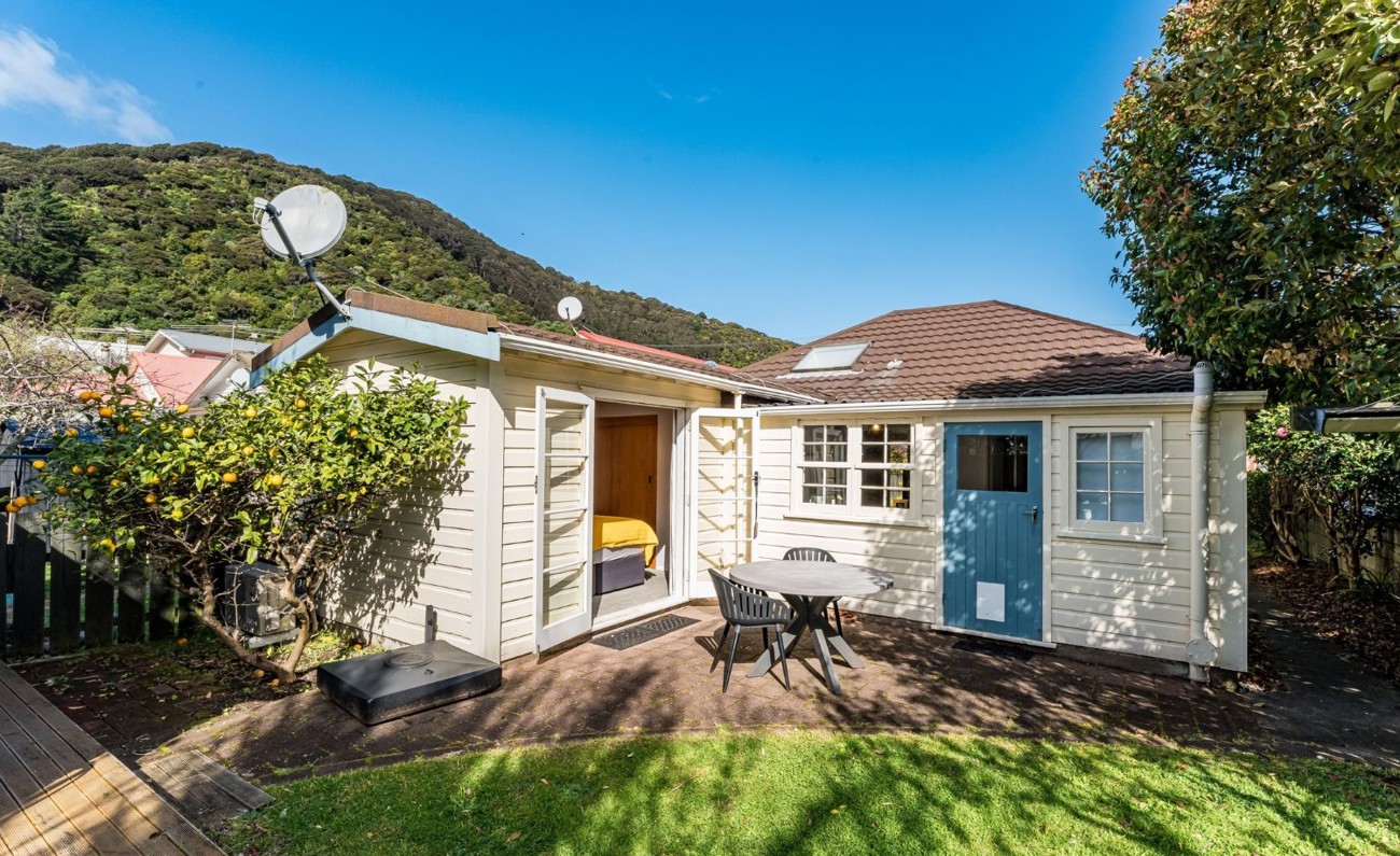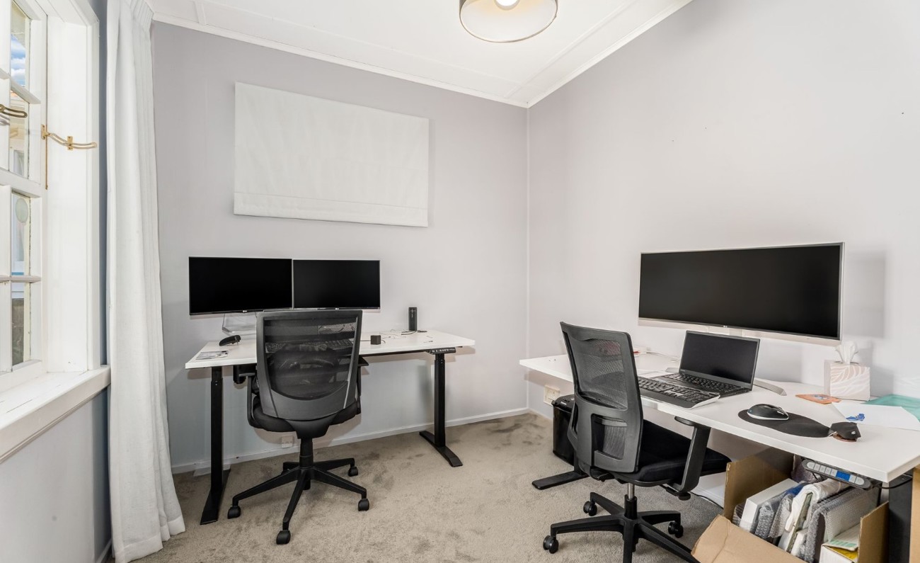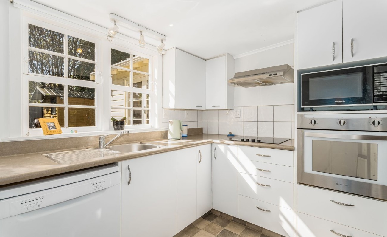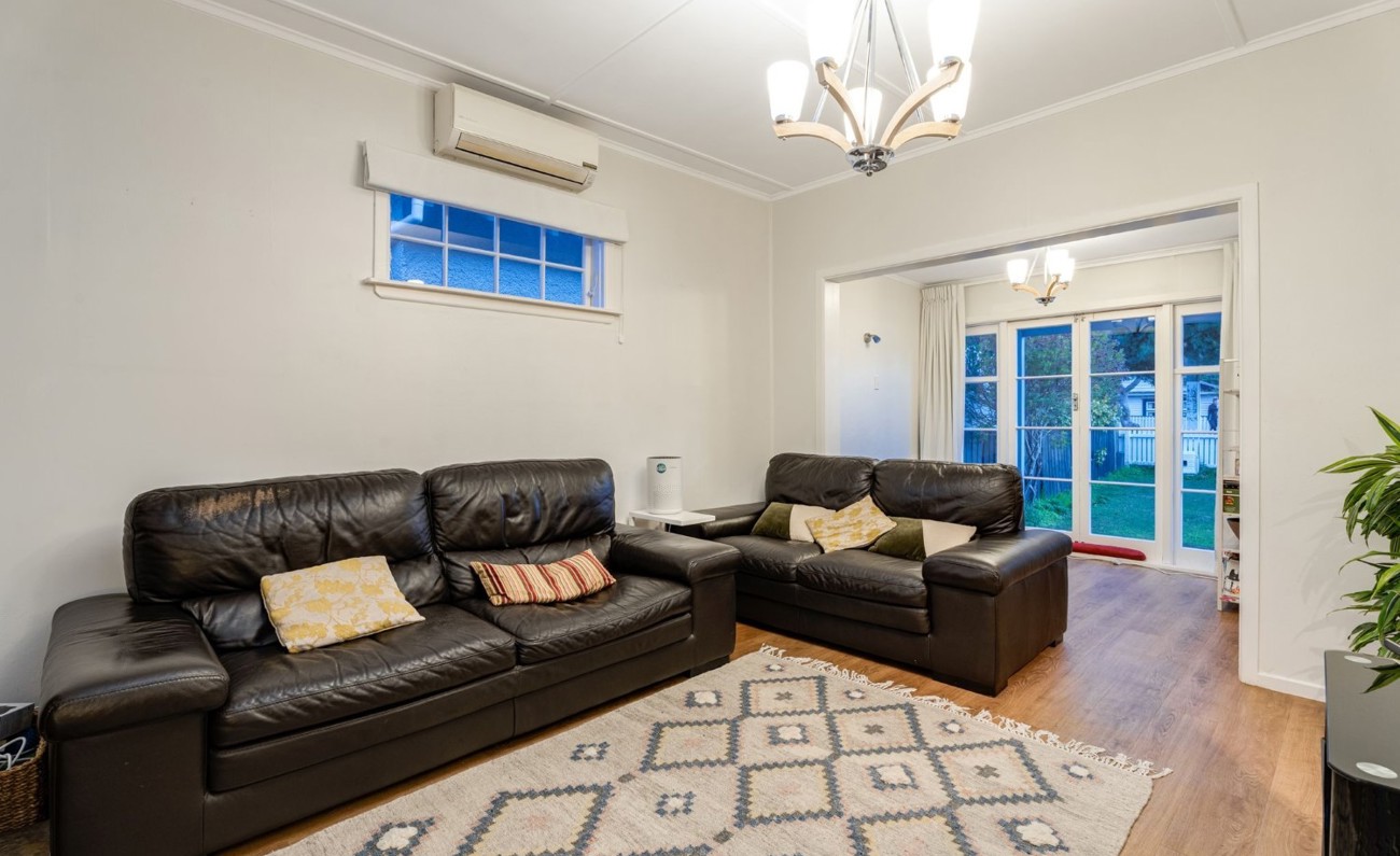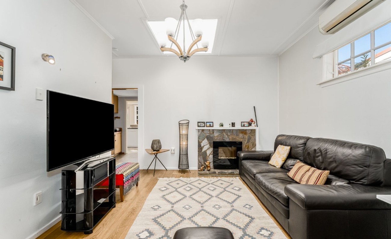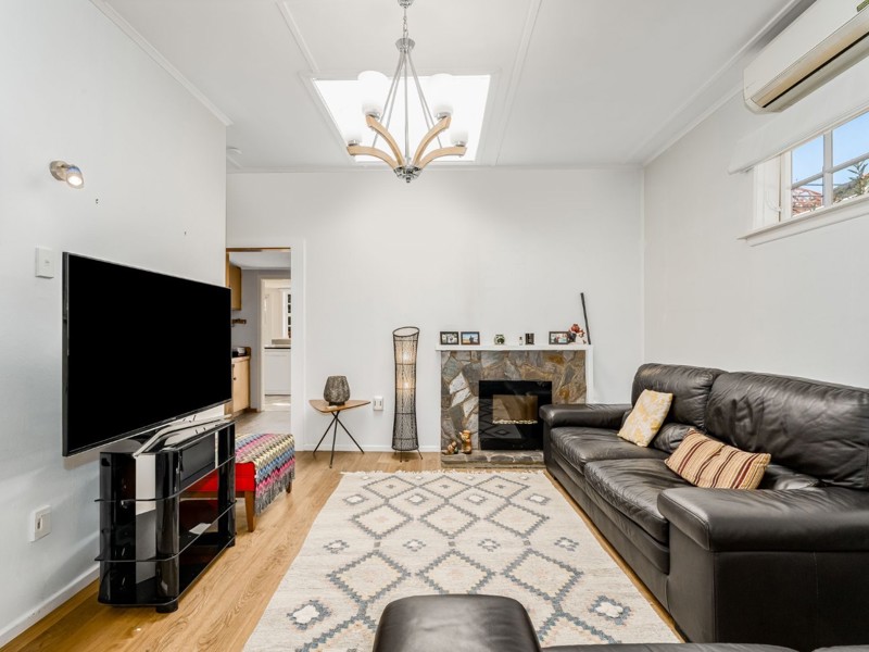 - Light-filled spacious lounge with skylight, heat pump and French doors opening to the front garden