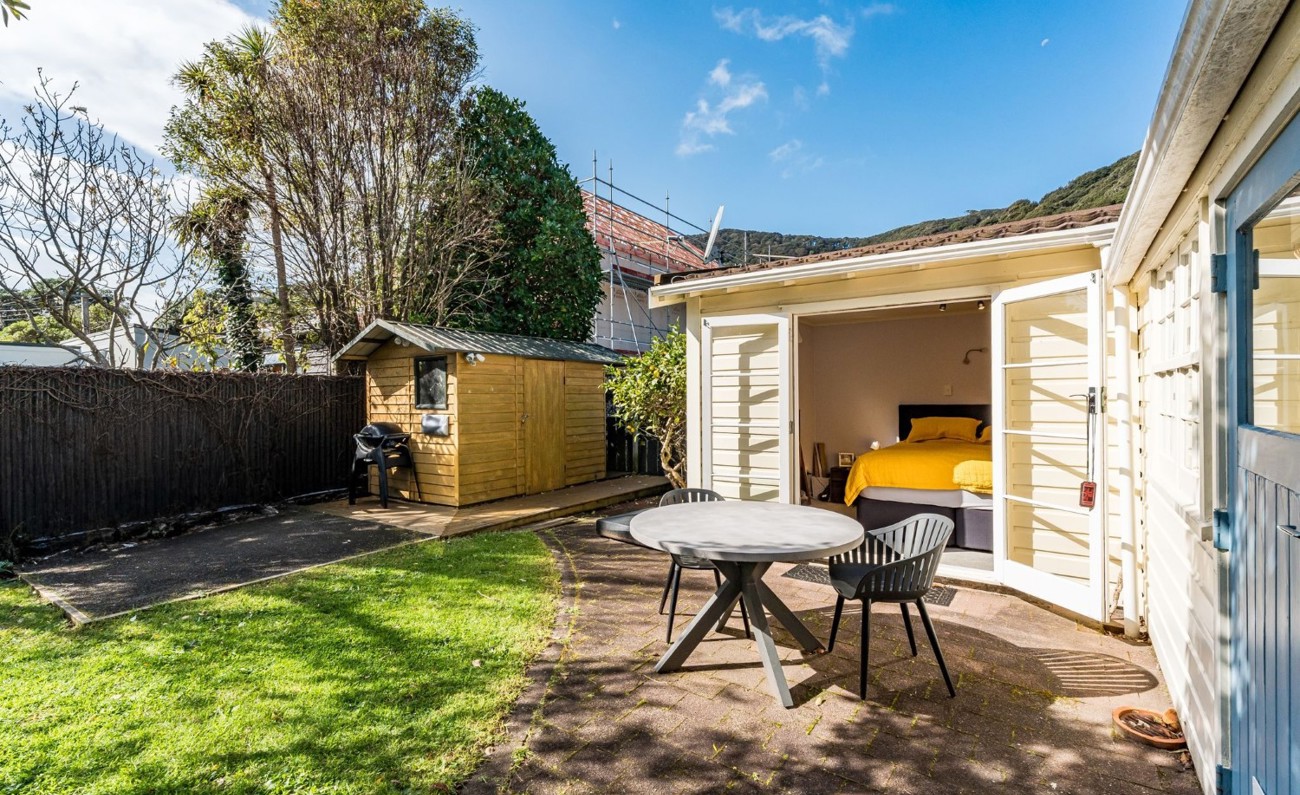 - Three bedrooms, all with built-in wardrobes; master opens to the garden via French doors