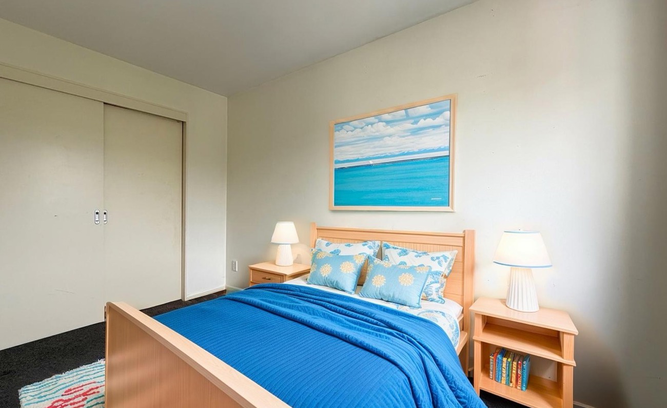 Spread over two levels, the apartment features four bedrooms, a study, two bathrooms, and an open‑plan kitchen, dining, and living area that flows seamlessly onto an outdoor deck, perfect for year‑round enjoyment.