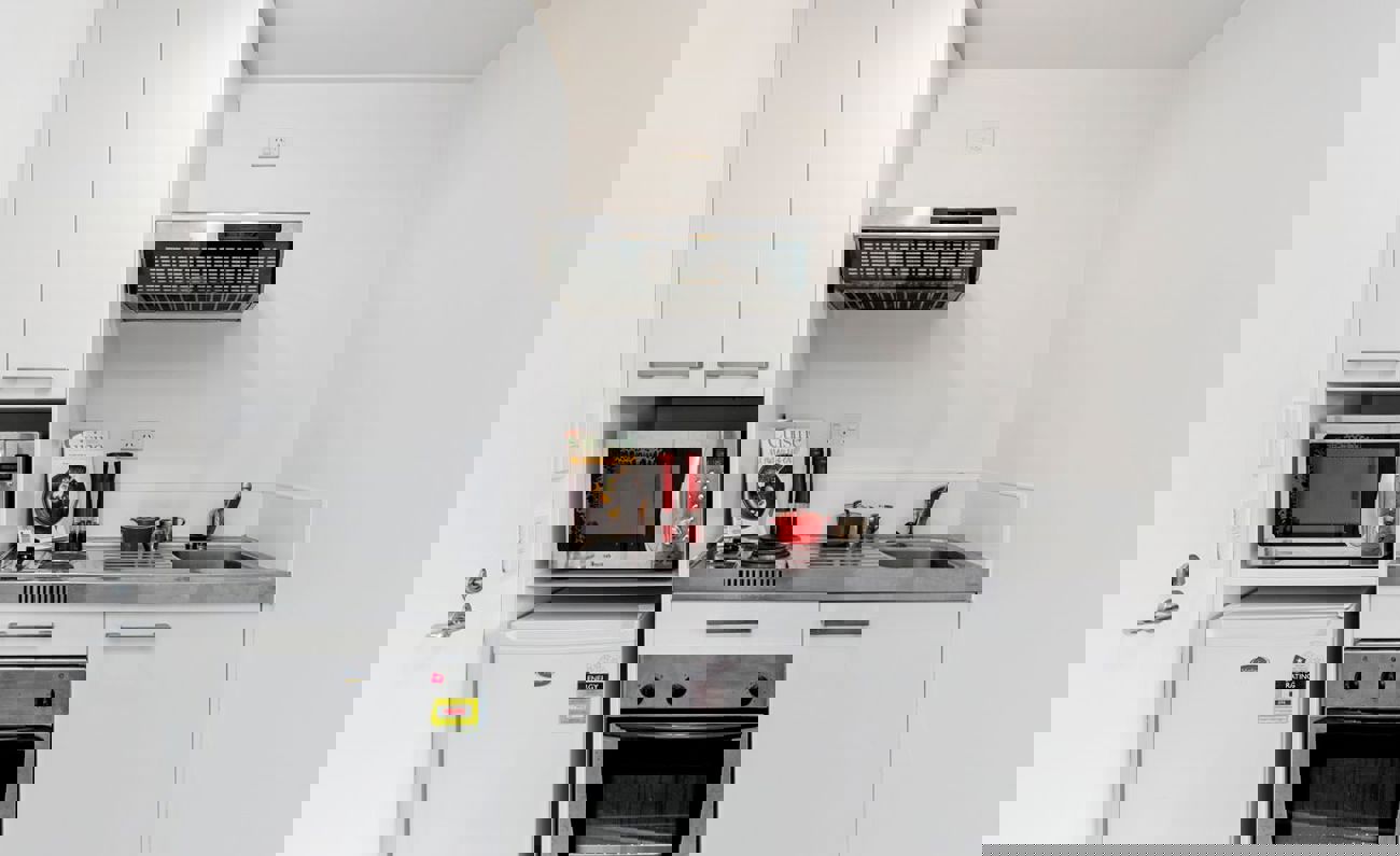 -Open plan living/dining/bedroom with an adjacent kitchen including under bench oven, electric hob, rangehood, microwave and mini fridge, plus Smart TV and a wall heater in the living area for warmth as required.