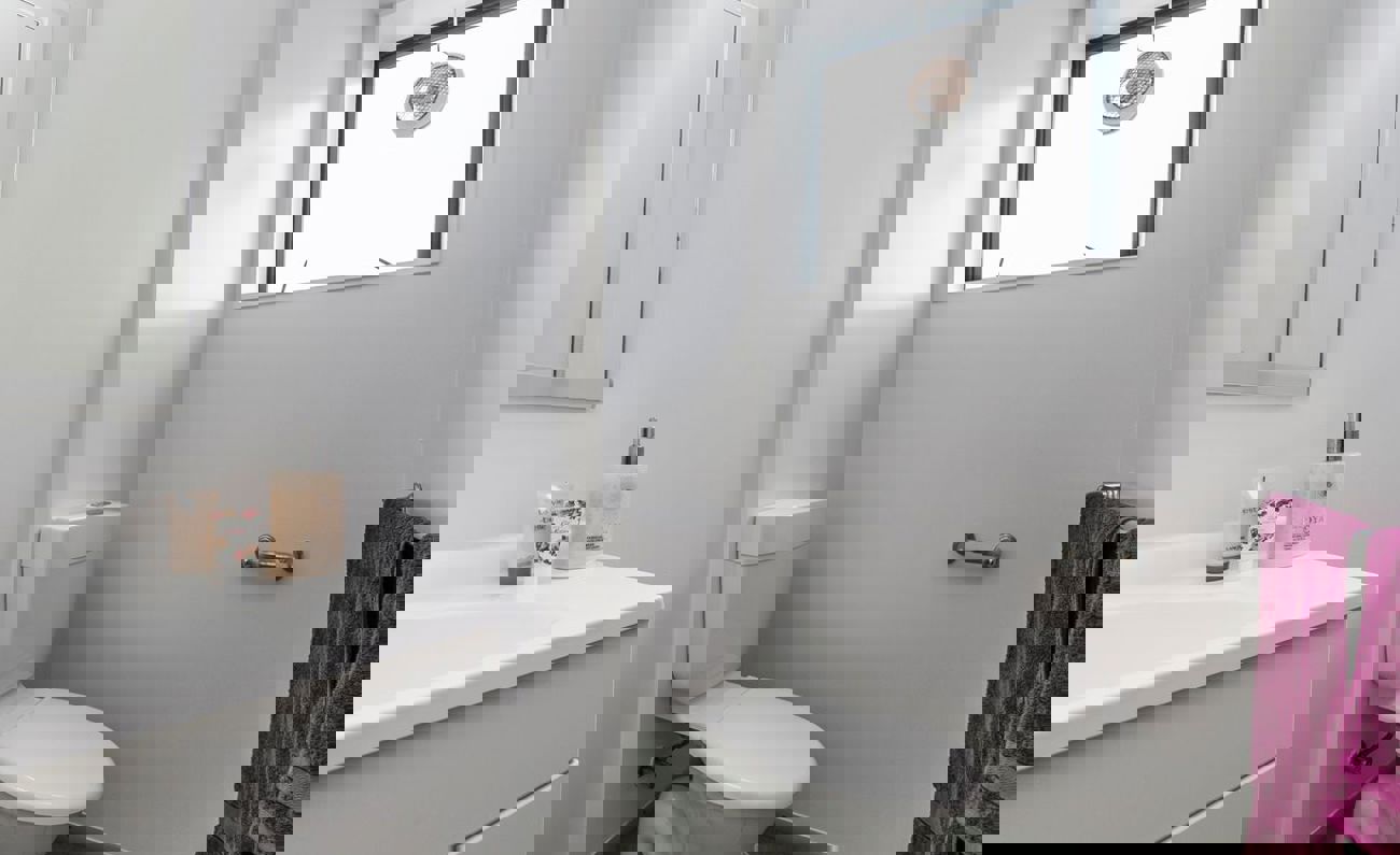 -Own ensuite bathroom with a shower, vanity with mirror above and toilet.