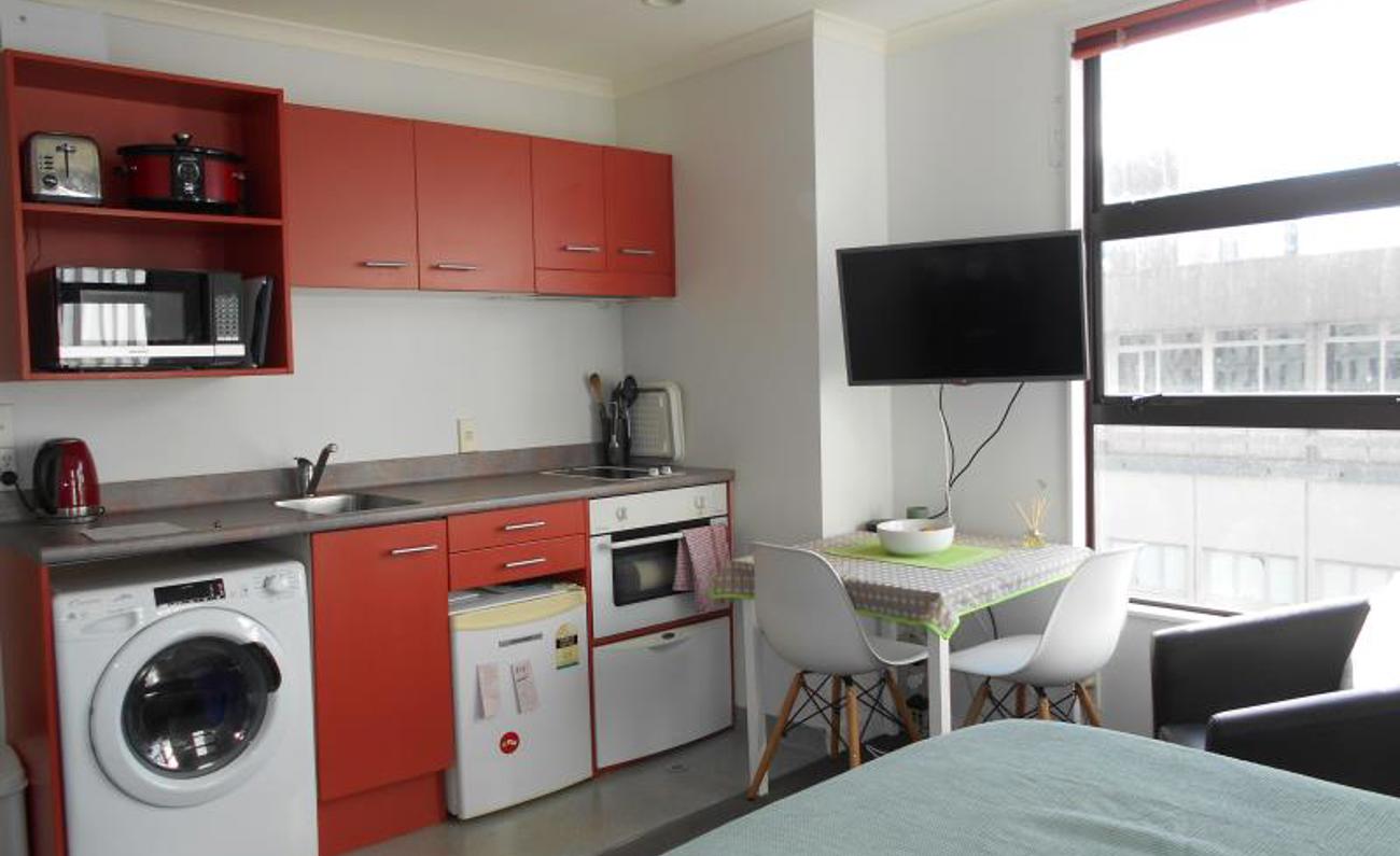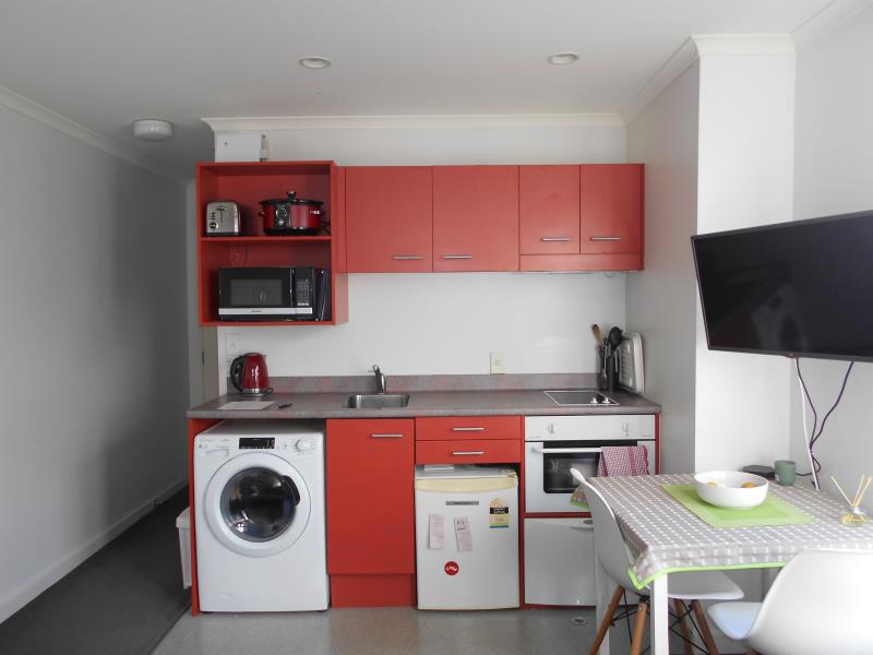 Features include fully furnished open plan bedroom/dining/living area with an adjoining strip style modern kitchen with laundry alcove.