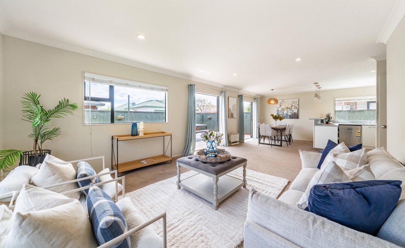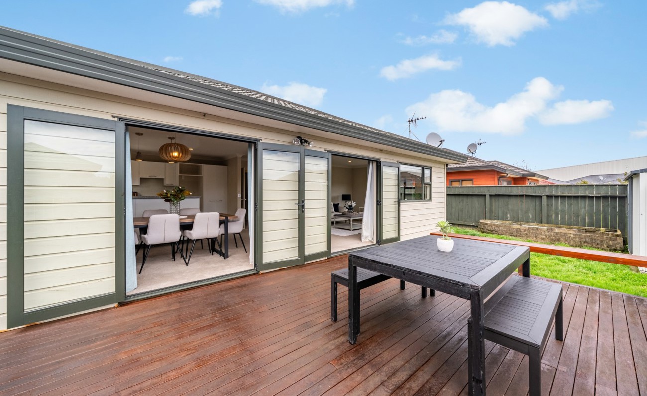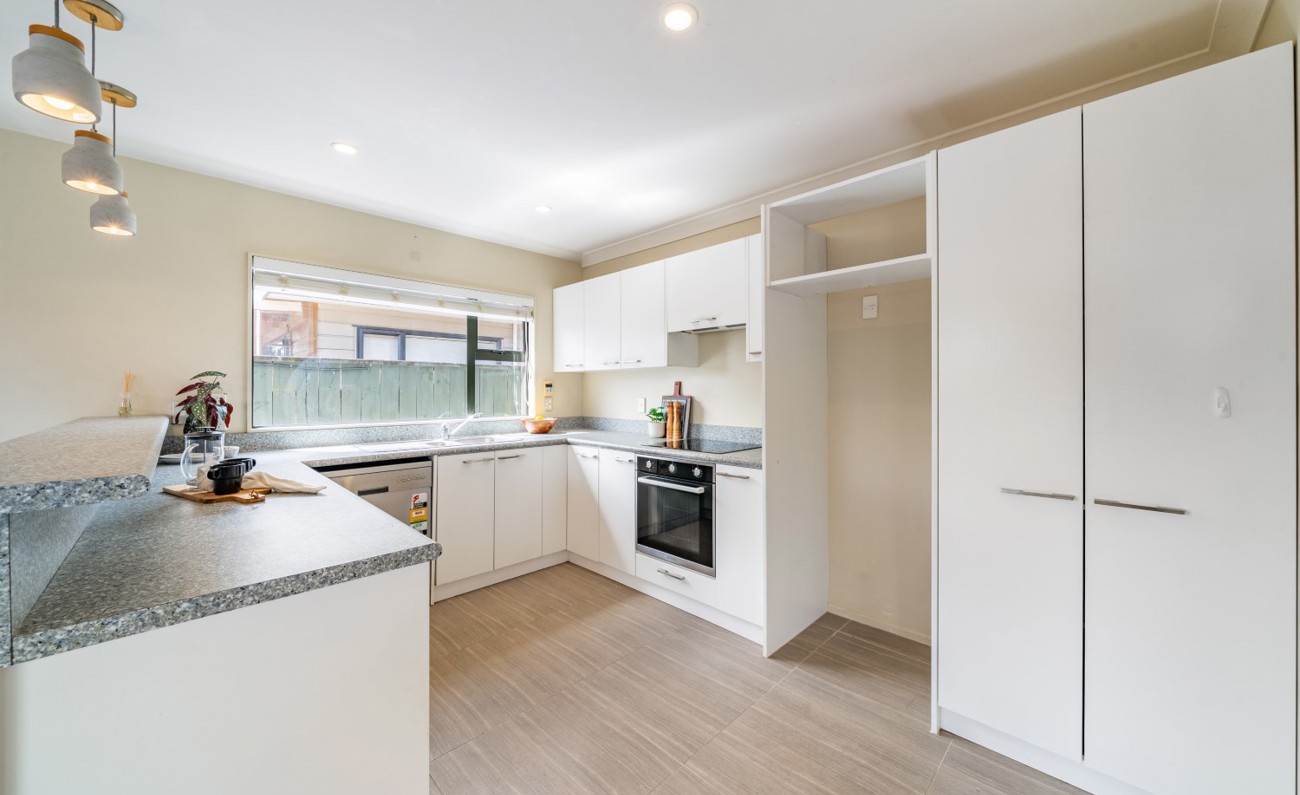The open-plan lounge and dining area is bright and welcoming, with easy access to a private deck that’s great for outdoor living. The kitchen is tidy and functional with good storage and bench space.