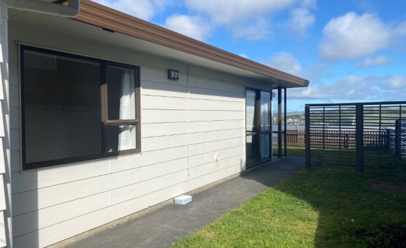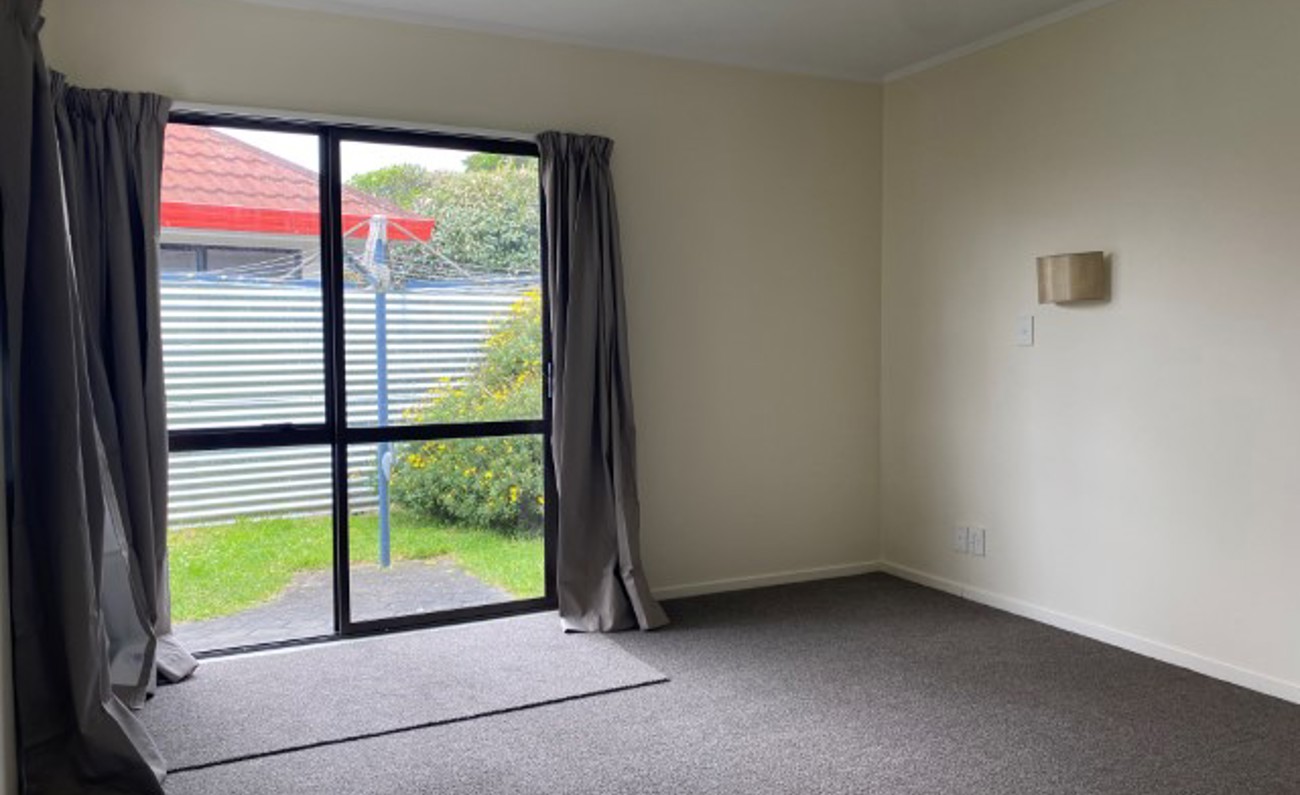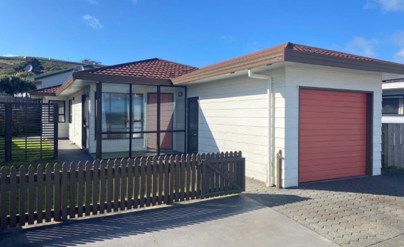 This newly painted & carpeted three bedroom home captures all day sun. Automatic garage is on a private rear section with flat lawn area. One queen bedroom and two doubles. DVS, dishwasher, Heat pump. One additional off street park. Bus stop is located at the end of the private driveway.