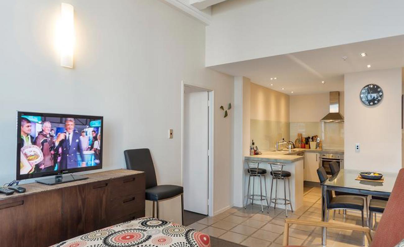 A spacious two-bedroom apartment with a modern kitchen in a heritage building offers substantially larger space than many other apartments around the city.