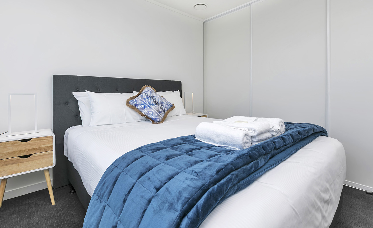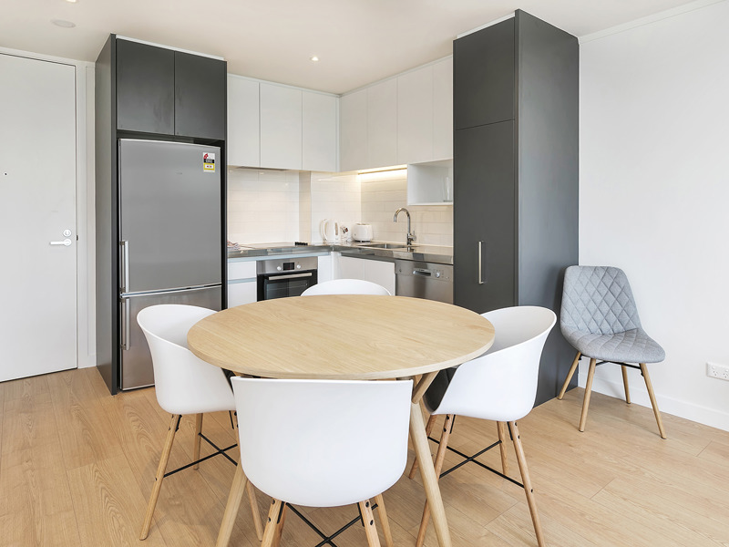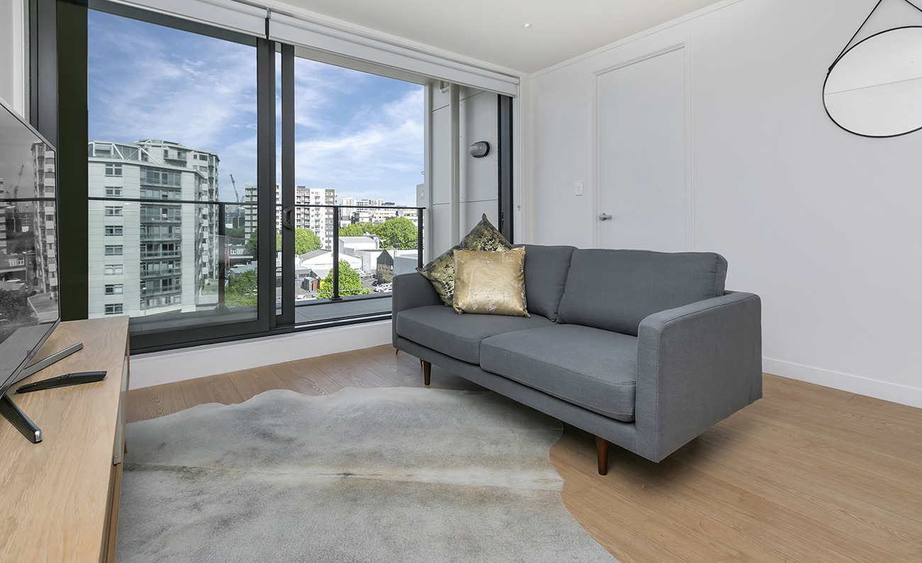 The Centro at Sugartree apartment offers a generous floor plan with a well-designed layout. The open-plan kitchen, dining, and lounge area flows seamlessly onto a private deck, creating a bright and inviting living space.