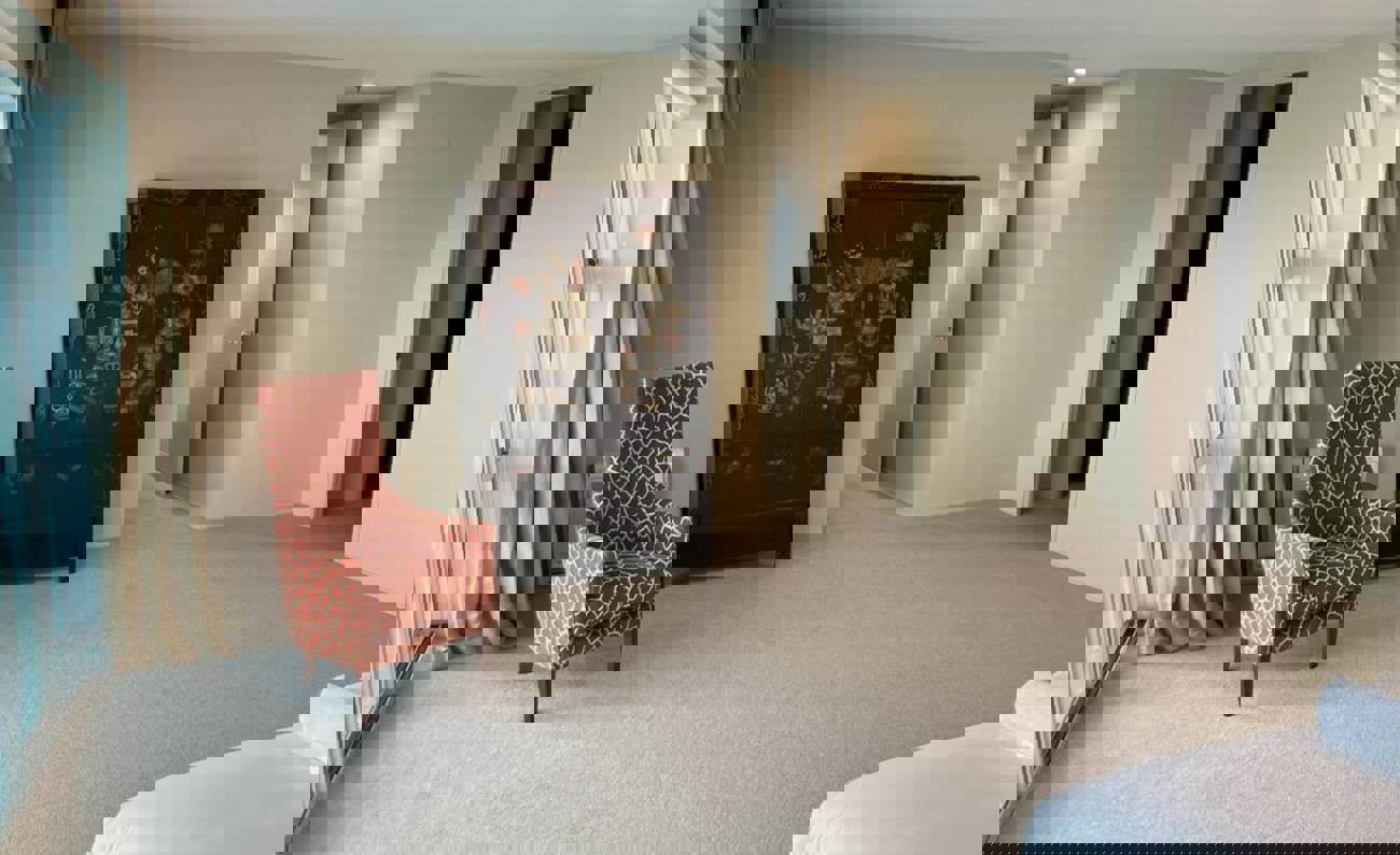The lounge opens onto the private spacious covered deck which runs the length of the apartment and, has views west up the harbour to the Harbour Bridge.