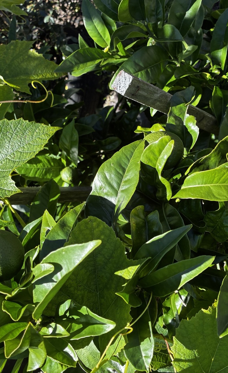 -Fruit trees + a thriving grapevine producing loads of grapes for summer