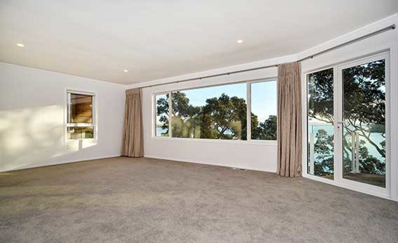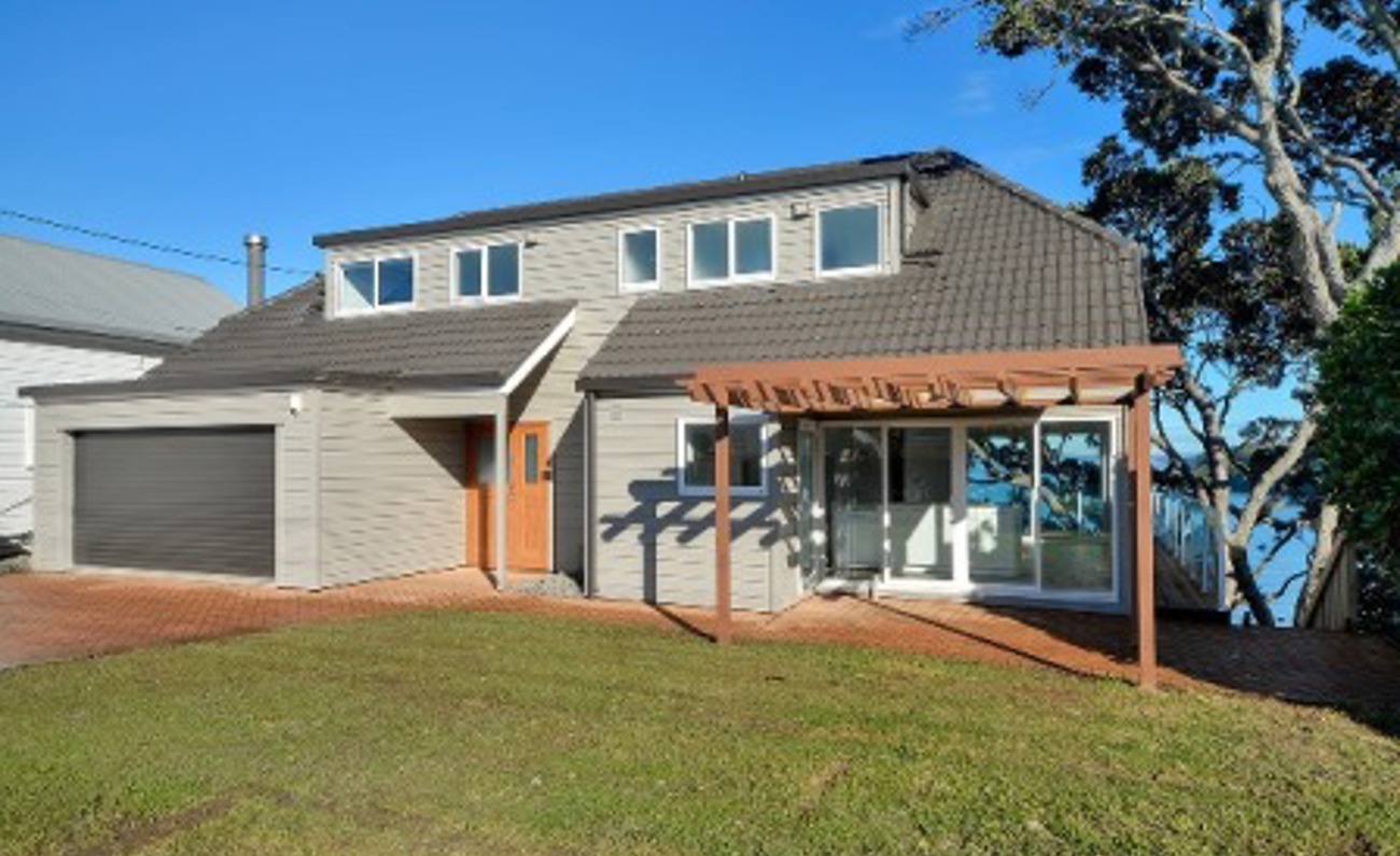 The home has a sunny fenced flat front garden, and the double garage has internal access to the main living level, which has two reception areas and an open plan modern kitchen - all opening onto an extended west-facing deck with stunning views over the bay through an old pohutukawa tree - the perfect place to watch the sunsets from. A full laundry and separate toilet are also on this level.
