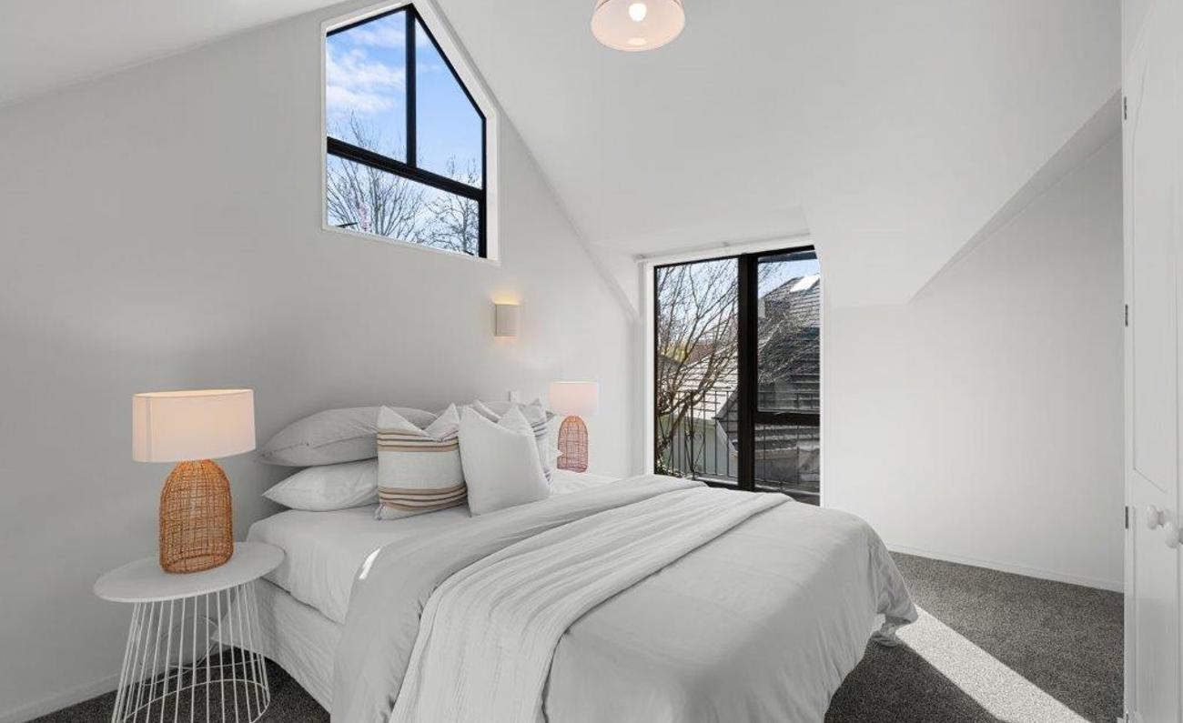 The ground floor offers a light and airy kitchen with a breakfast making it open plan to the dining area. This leads through to the generous lounge which benefits from a heat pump and access to the private courtyard. There is a guest toilet and separate laundry on this level.