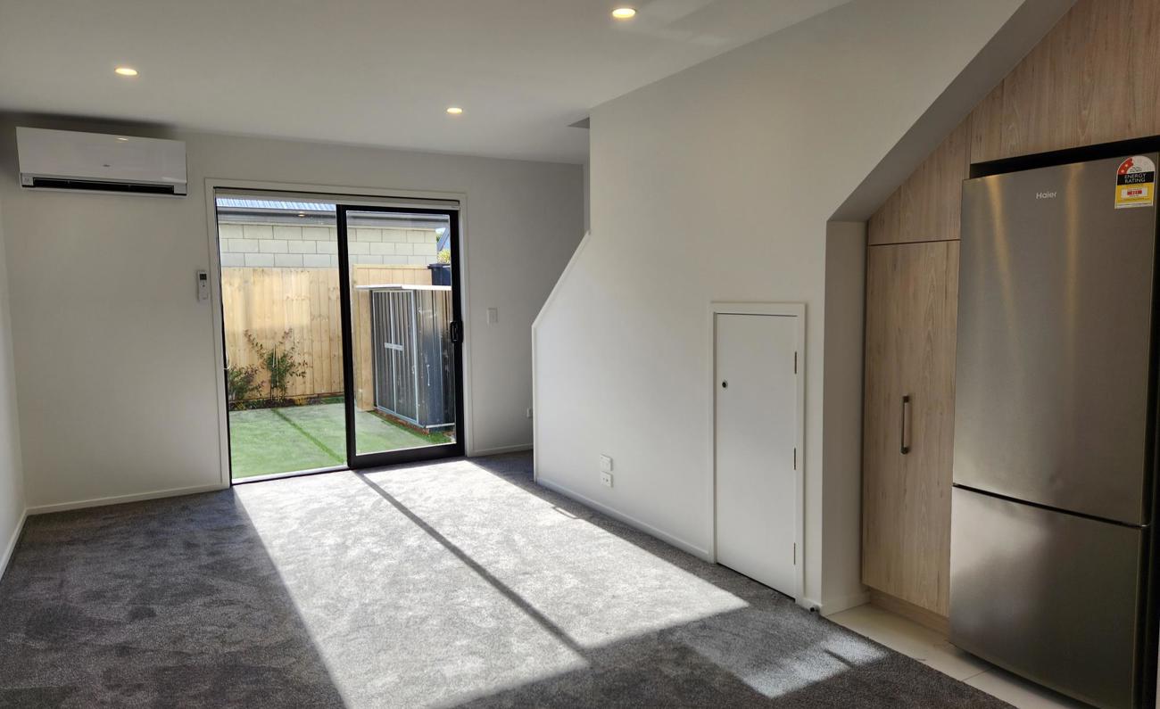 The ground floor offers open plan living, the kitchen has a fridge and dish draw, it opens out to the dining and living space which benefits from a heatpump and access out to the private courtyard.