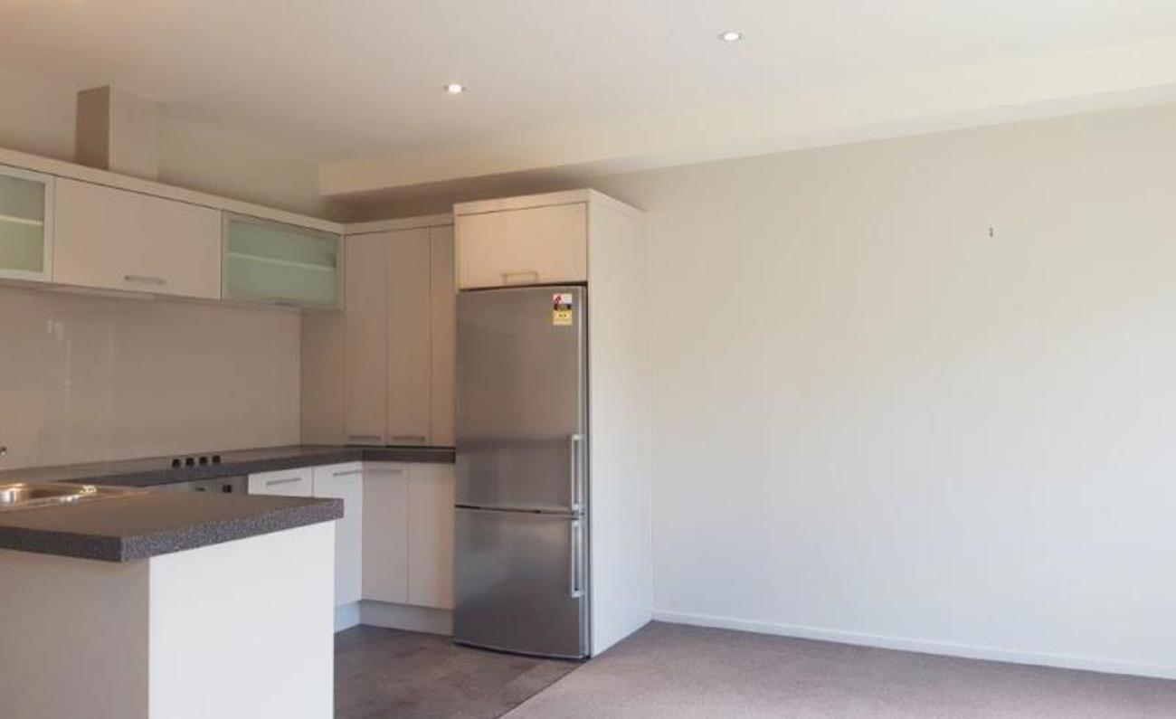The modern kitchen is light and airy, it has a dishwasher and ample storage and a fridge freezer. It is open plan to the dining and living spaces which benefit from a heatpump and access to the north facing private patio.