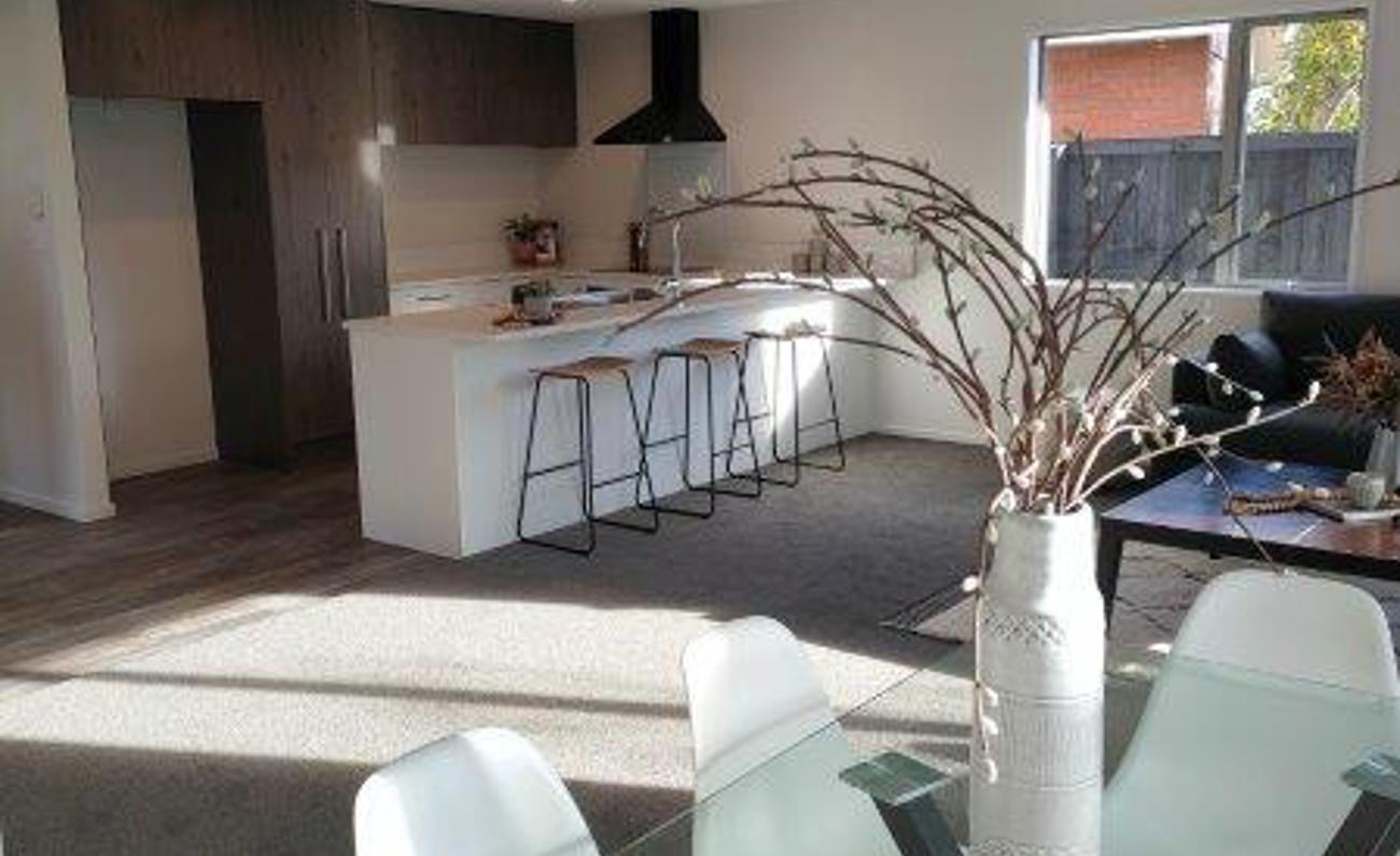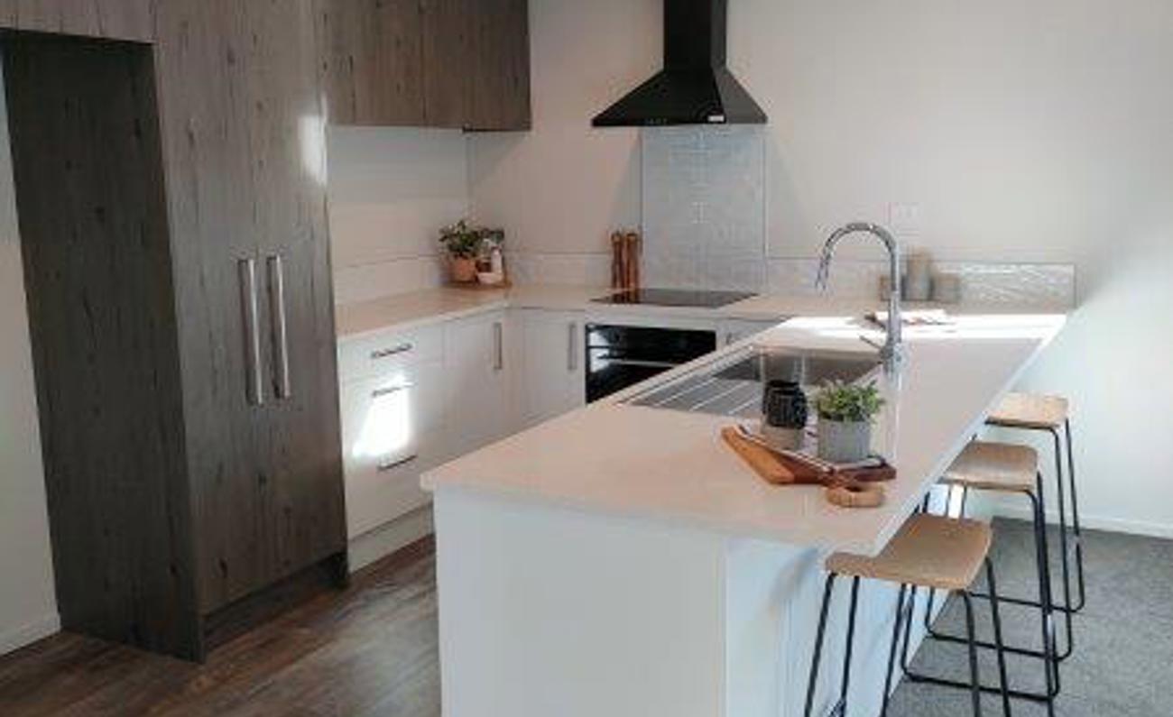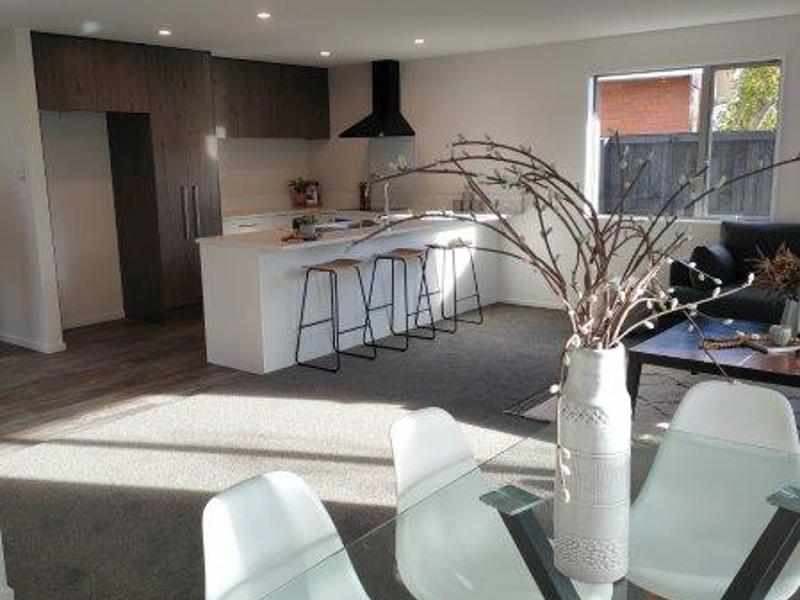 - open-plan kitchen/dining/living spaces