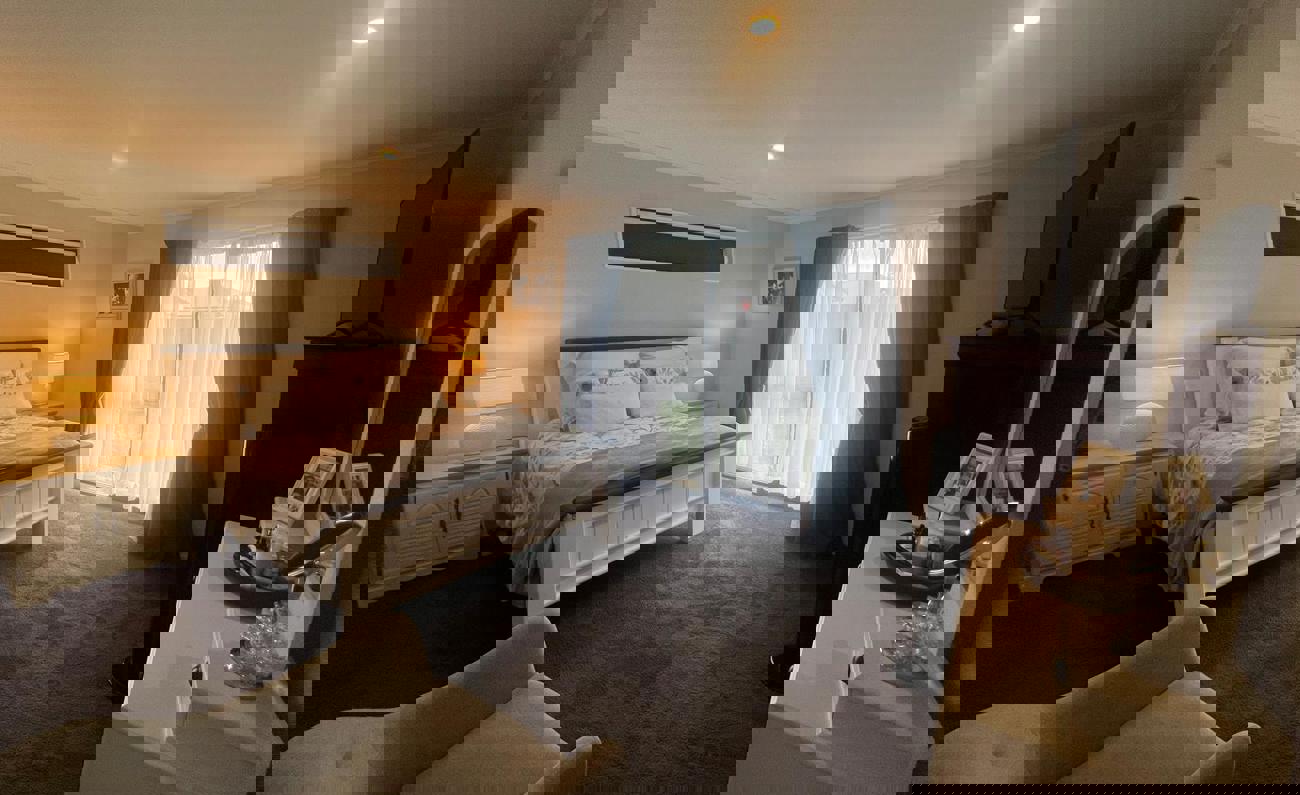 * Master suite with walk-in robe, ensuite, and ranch-slider access to lawn