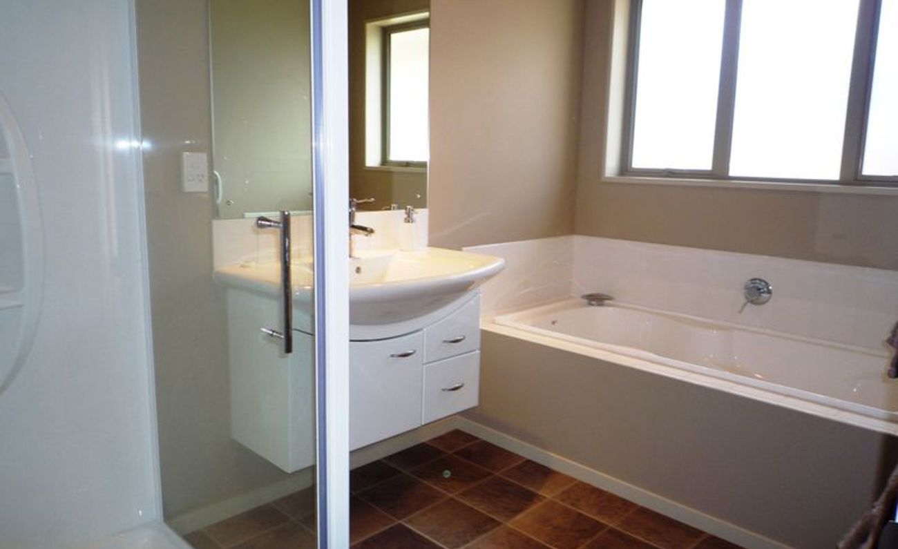 The family bathroom has both a full-sized bath and a shower cubicle. The toilet and laundry are both separate.