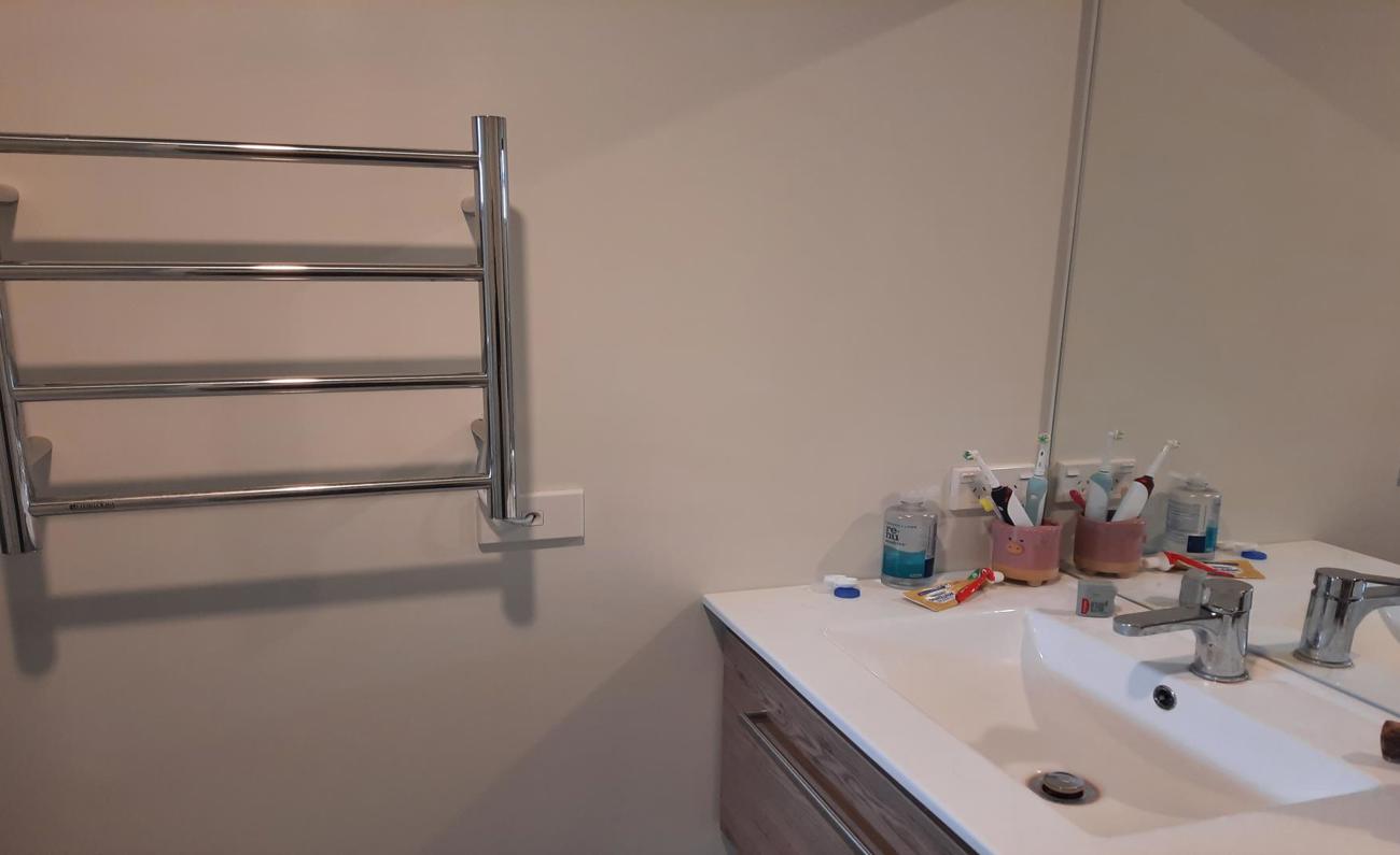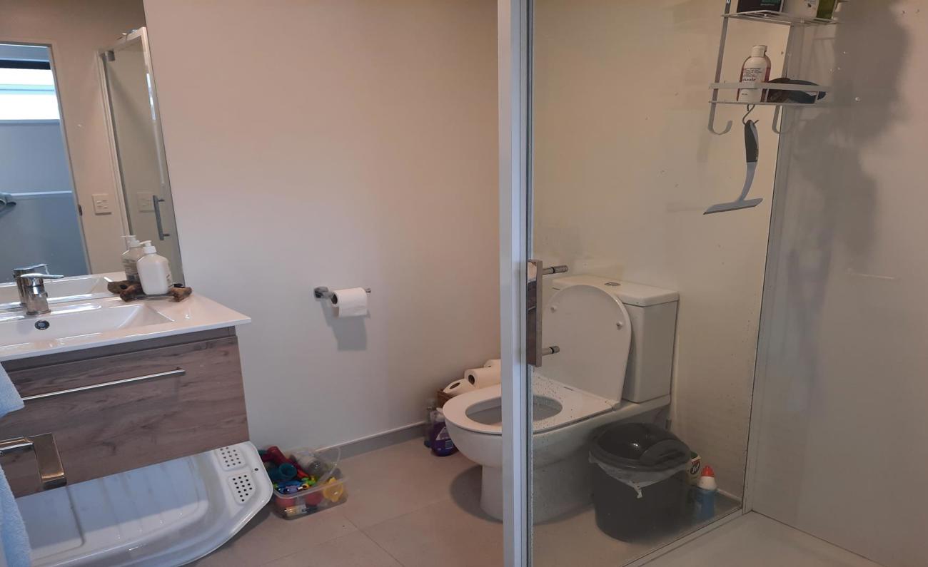 • Tiled bathroom with shower, toilet, vanity, heater and extractor fan.