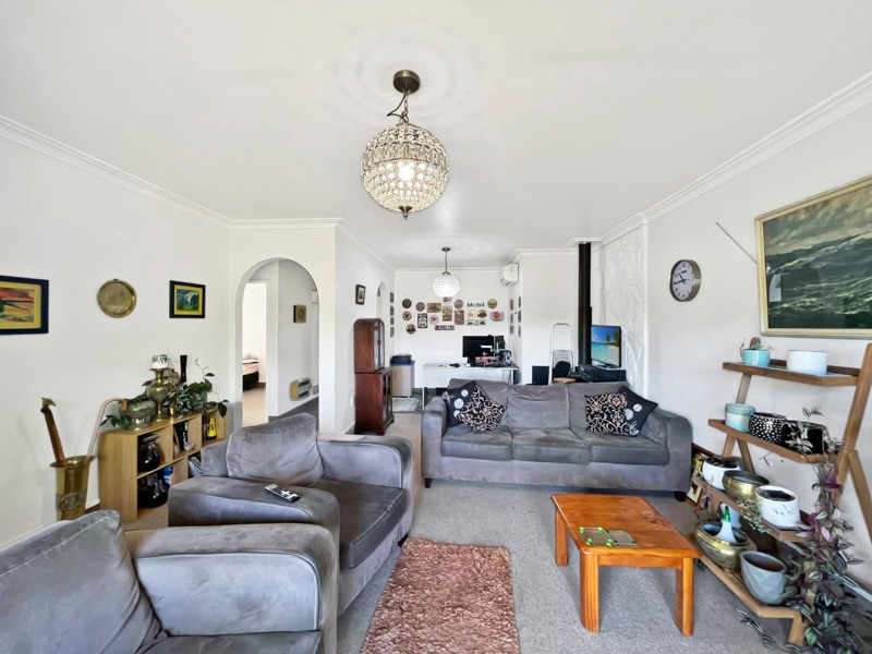 Inside, the home features a modern kitchen that flows through to the living area, creating a comfortable and practical space for everyday living. The lounge opens out to a small patio, a perfect spot to enjoy the sun and garden surroundings.