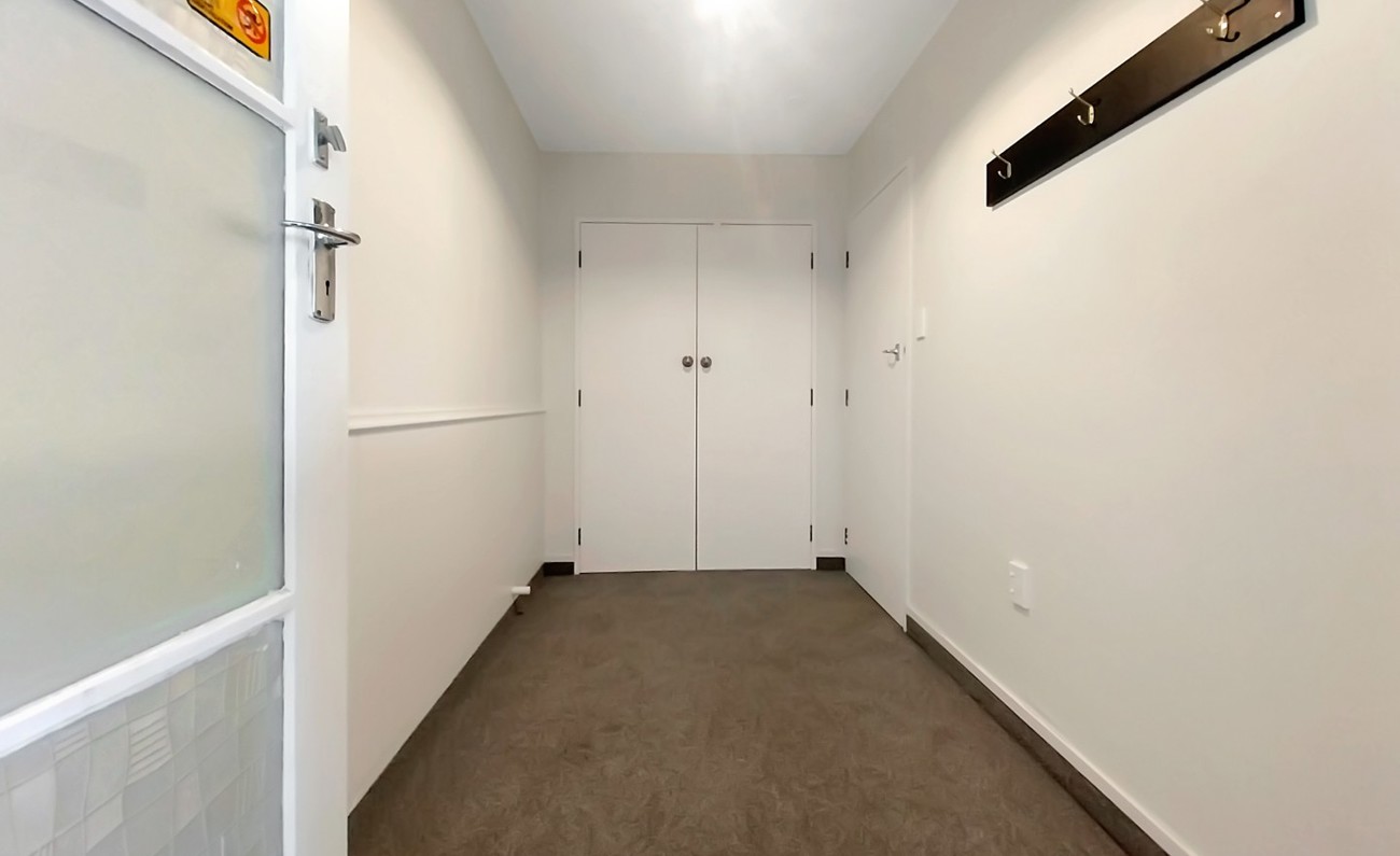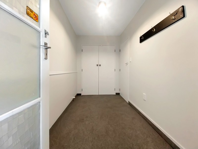 There’s no shortage of storage in this unit, a double wardrobe with shelving in the entrance lobby, and a large hot water cupboard for your linen in the hallway.