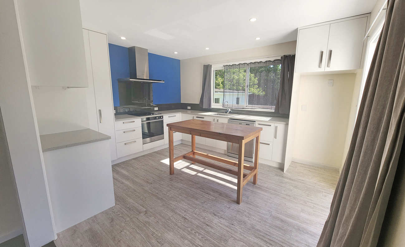 The home includes a modern kitchen with excellent storage. The interior is being freshly painted in neutral tones, creating a light, modern feel.
