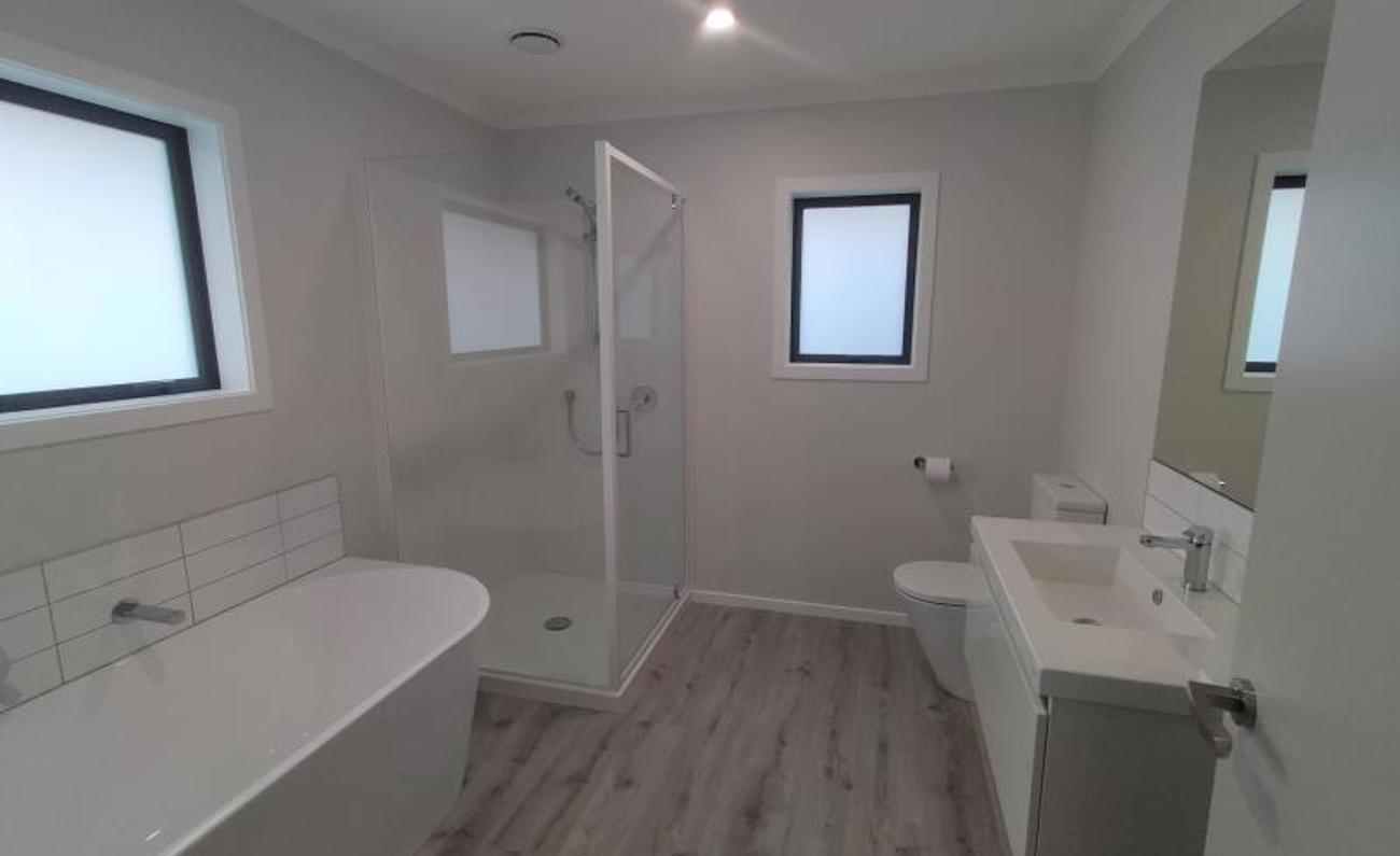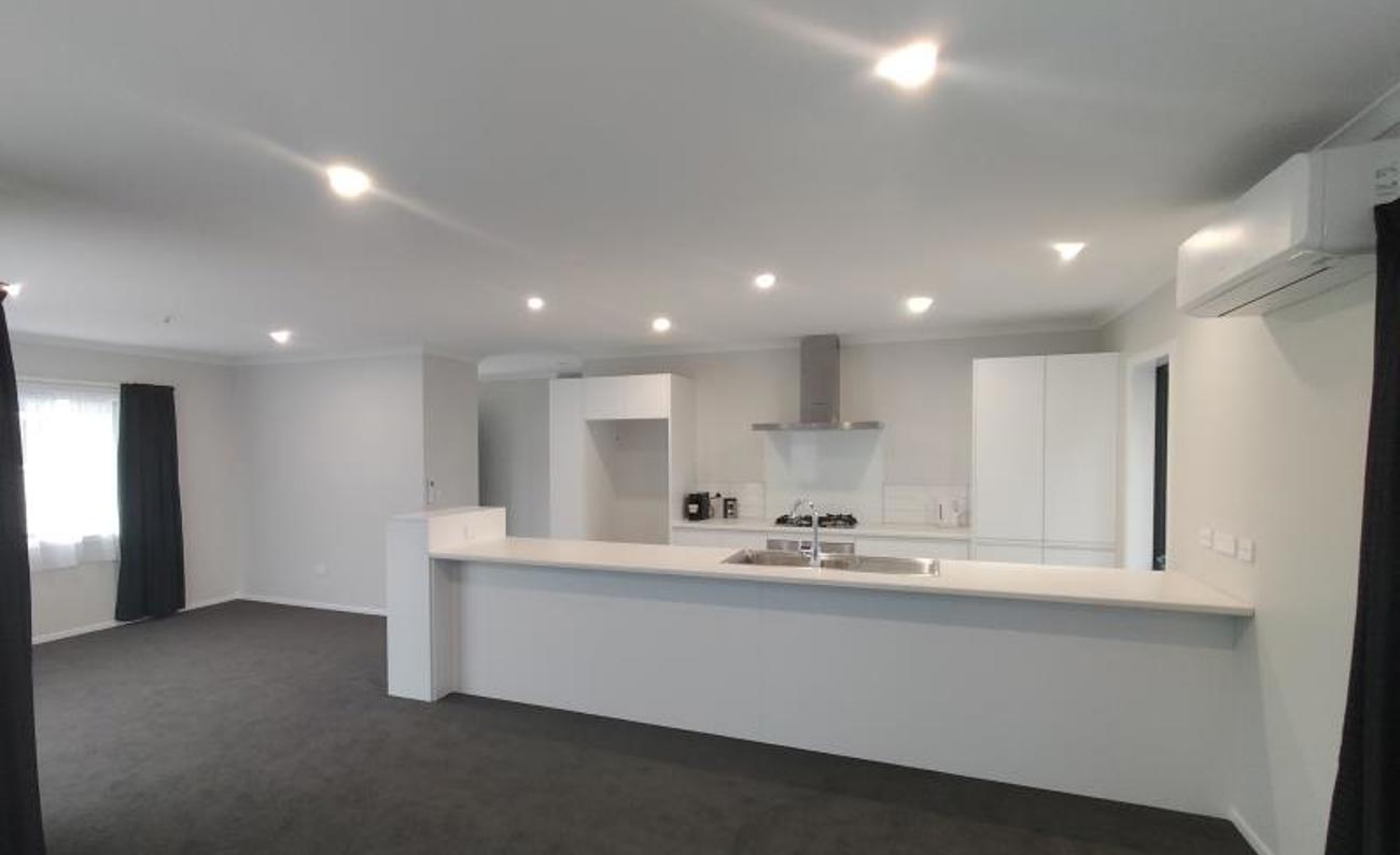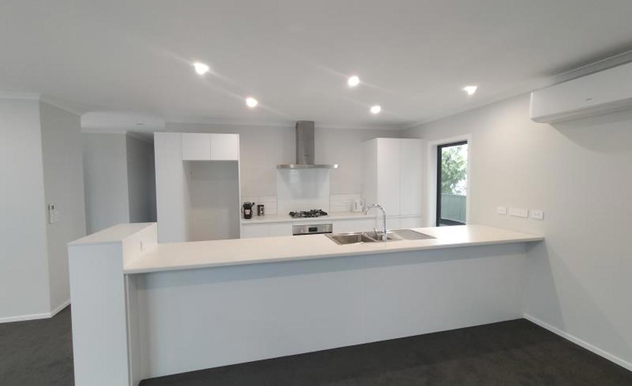 This property is of exceptional quality. Offering all the conveniences of modern-day living, warmth, and style, be the first to rent this lovely new home. Open plan living areas offer a convenient hub for family and friends to congregate. Large sliding doors open outside to a patio providing indoor/outdoor flow. The kitchen is modern and offers electric oven, gas hobs and dishwasher.