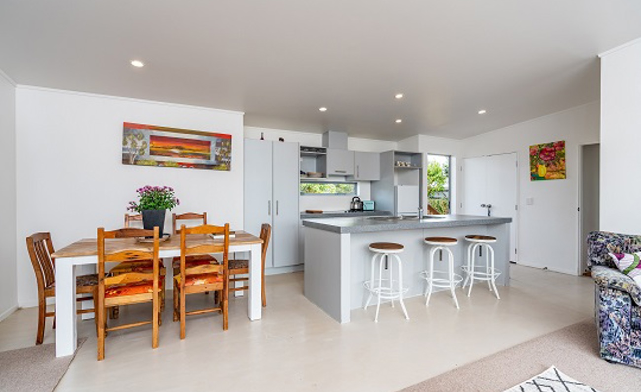 Tidy three-bedroom, 2-bathroom home. Open plan living opening onto a sunny deck. The master bedroom has an ensuite. Laundry is in a clever alcove cupboard off the kitchen. Plenty of parking and close to estuary beach and surf beach. Shops, cafes, and golf course a very short drive away. Pleasant rural outlook with views to the Brynderwyns.