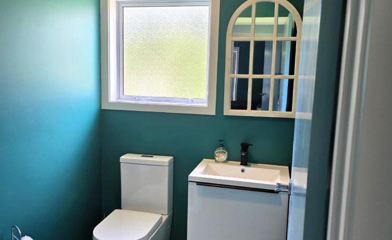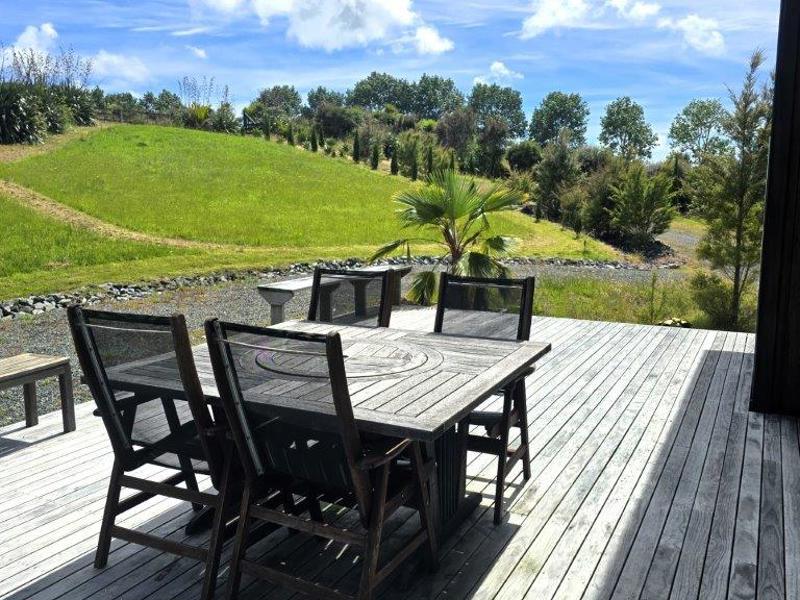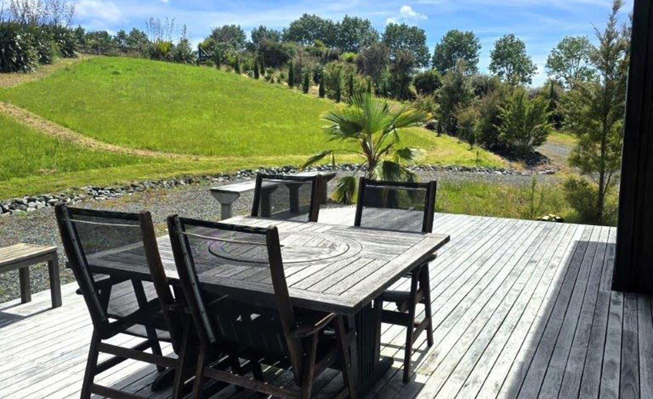 From the kitchen area is semi covered deck area to expand your outdoor living and overlooks the trees. The views from both sides of the house overlook bush and some of the peaks of the Brynderwyns.