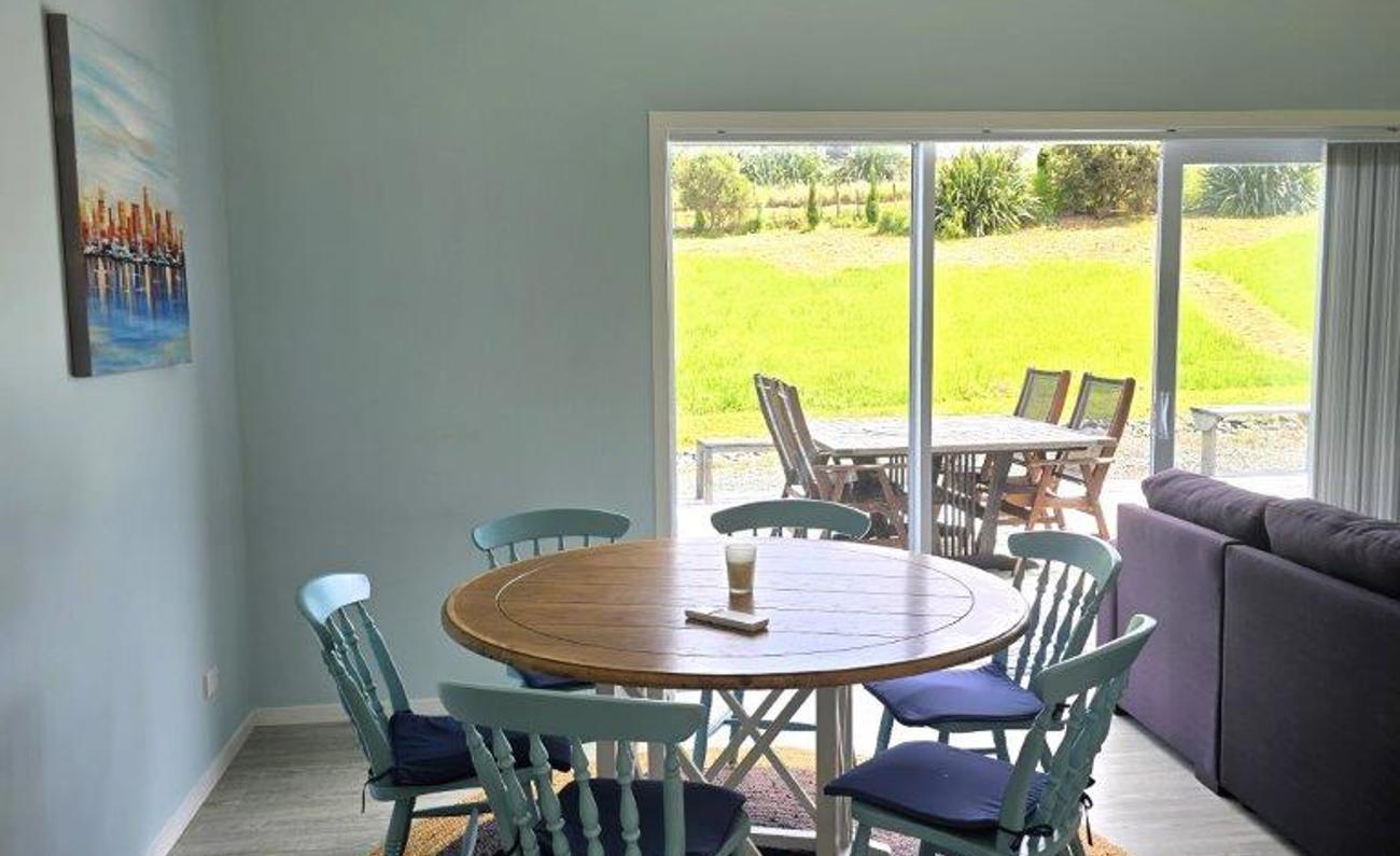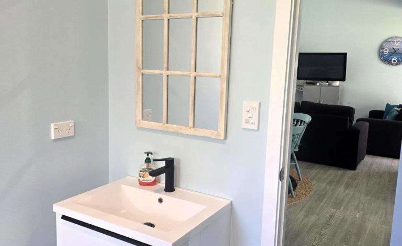 Modern well-appointed kitchen with island, opens to the dining and living area. This area opens to a large deck suitable for outdoor entertaining. Two further bedrooms are serviced by a bathroom between.