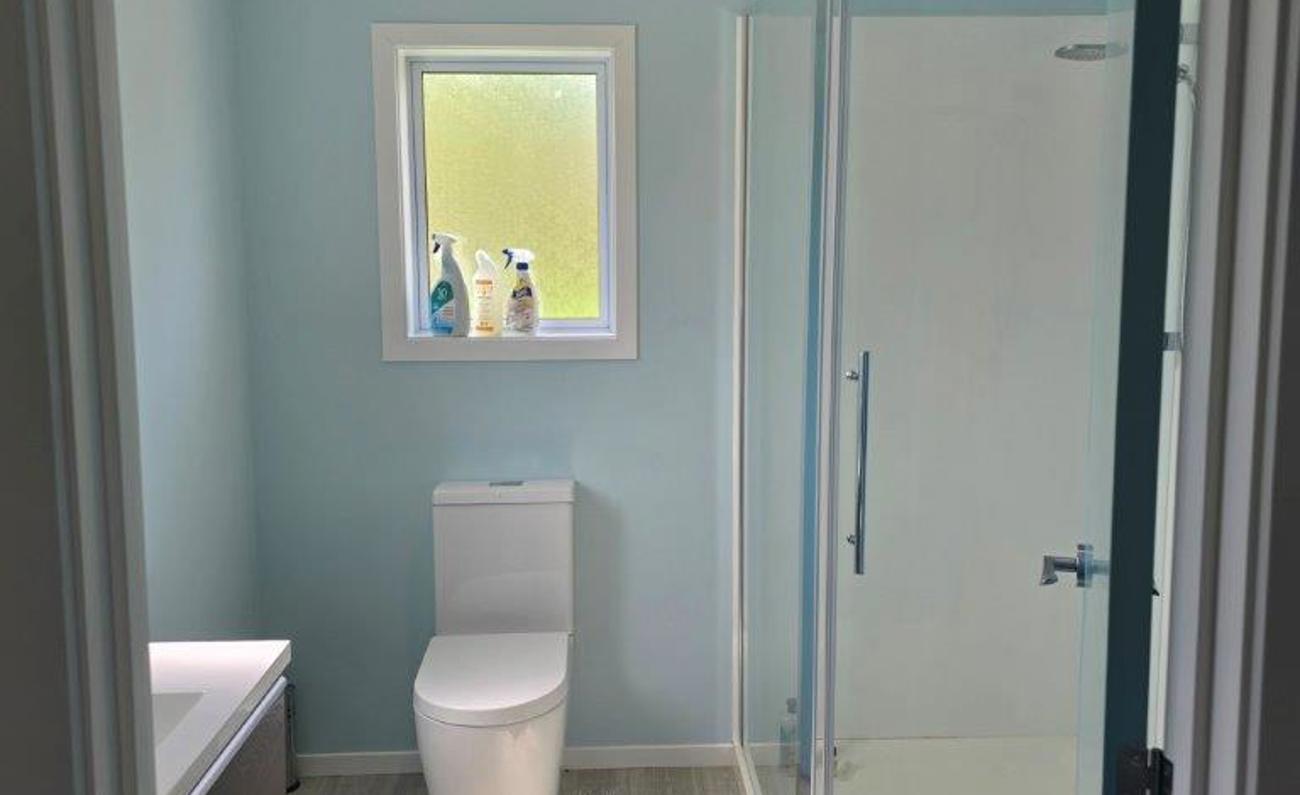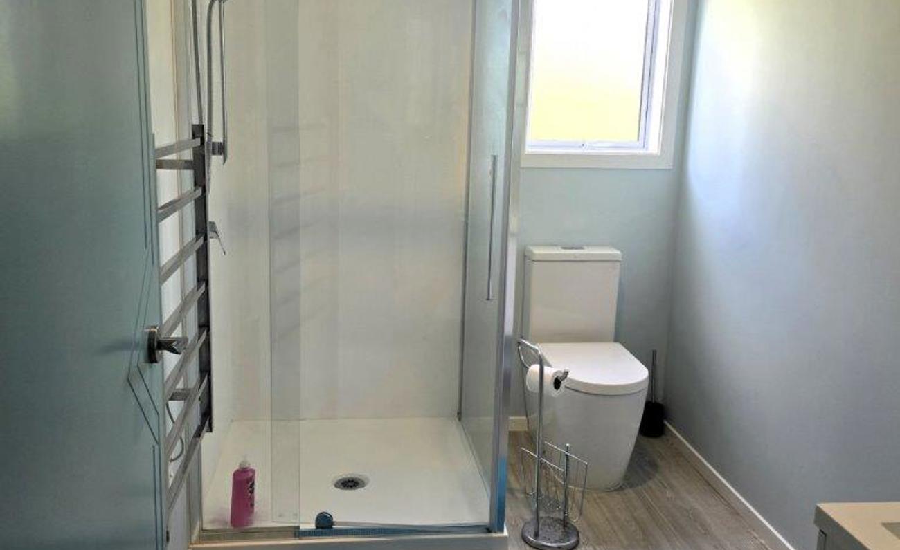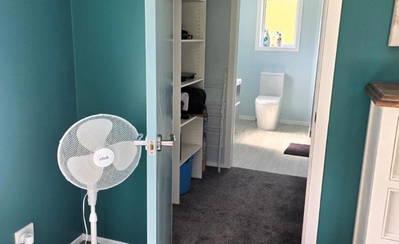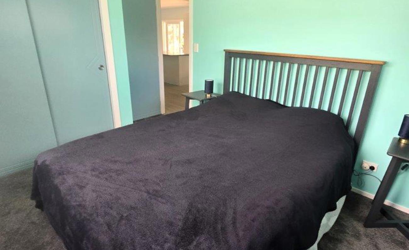 The master bedroom opens onto the deck from a slider door. Walkin wardrobe to the ensuite bathroom.