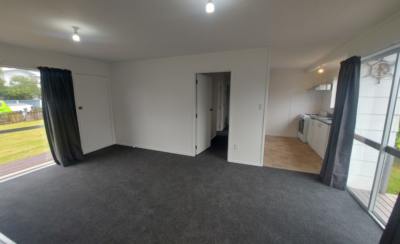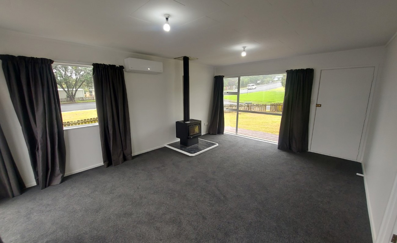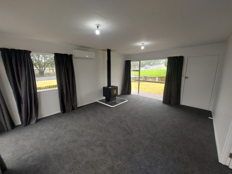 The home is kept comfortable year-round with a heat pump, and features a sunny deck off the living area providing great indoor-outdoor flow. The section is large, offering plenty of outdoor space, though it is not fully fenced.