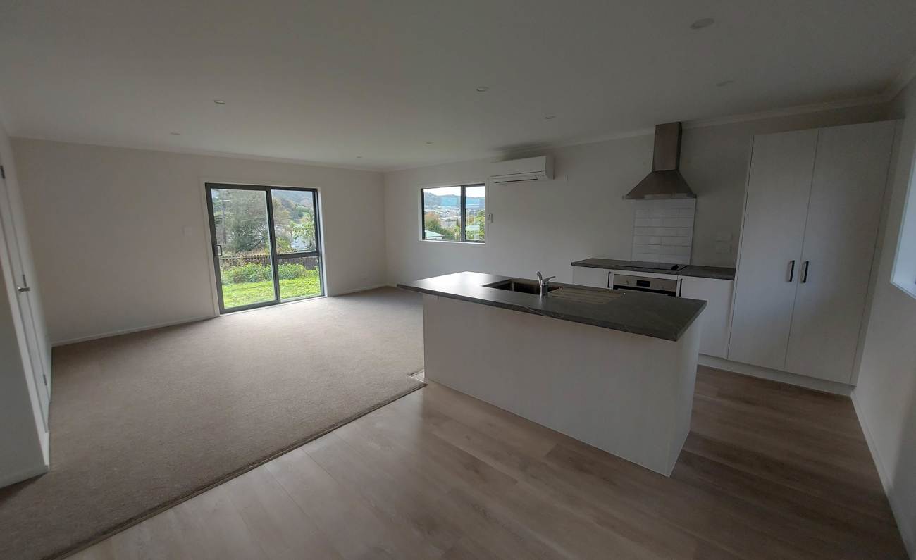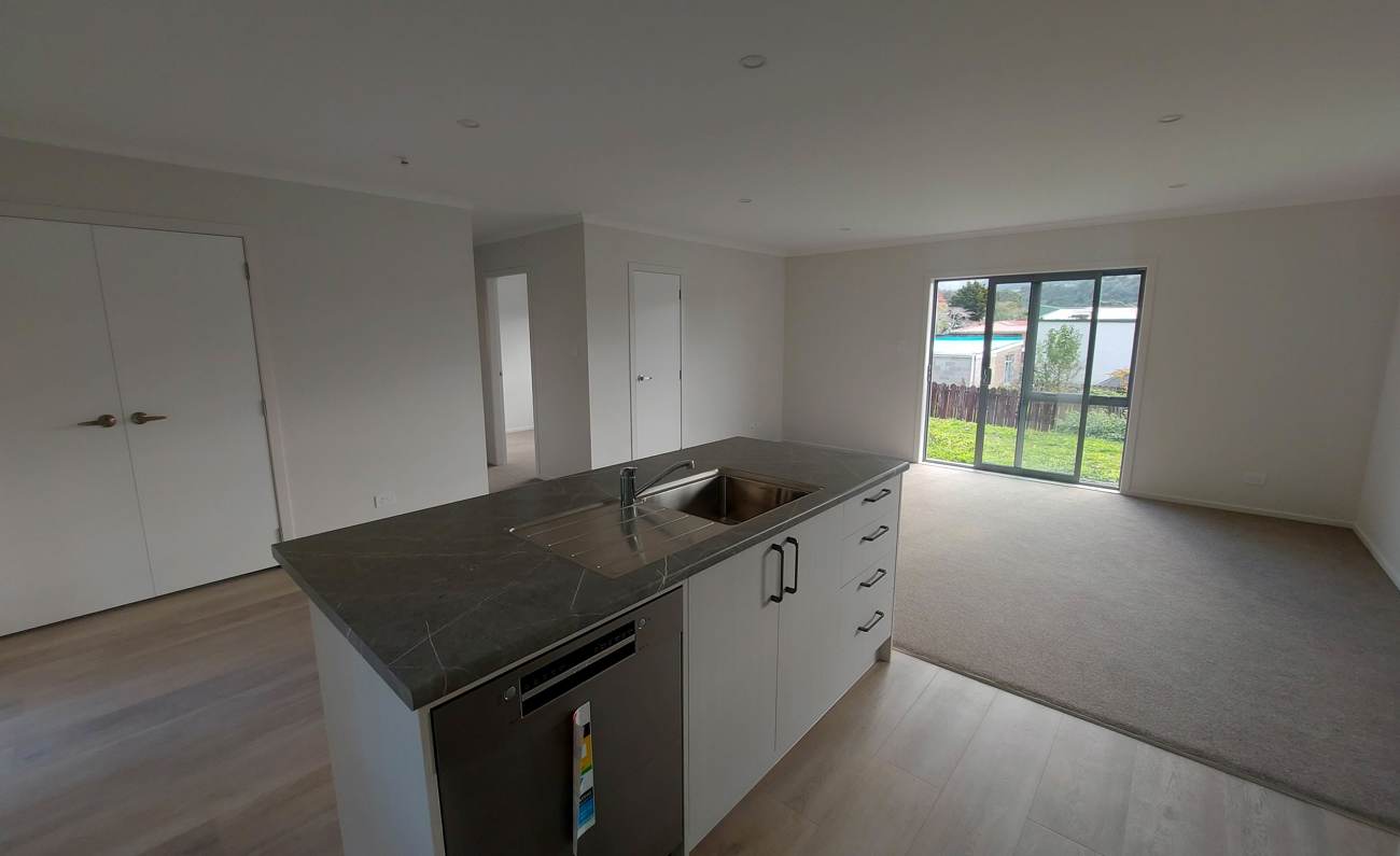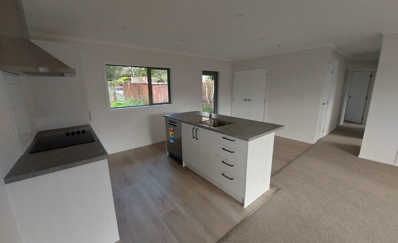 This 3 bedroom home has been newly built. It sits in a great position off the road and has been decorated in nice neutral colours. The home is double glazed for warmth and features a well positioned heat pump to warm the whole home. The kitchen is modern and is open plan, centrally located in the dining/living room. The 3 bedrooms have a wardrobe each and are a good size for the home. The family bathroom features a shower and a bath. It has a great feel about it for the minimalistic person with a decorative flair. There are two off street parks.