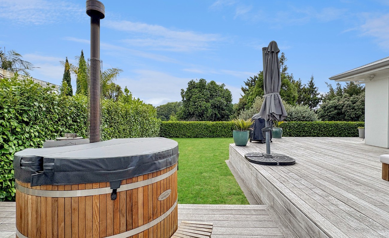Outside, a sunny north-facing deck offers a peaceful spot for your morning coffee or a relaxing evening soak in the hot tub. The fully fenced section and established gardens create a sense of privacy and calm, making it easy to unwind at the end of the day.
